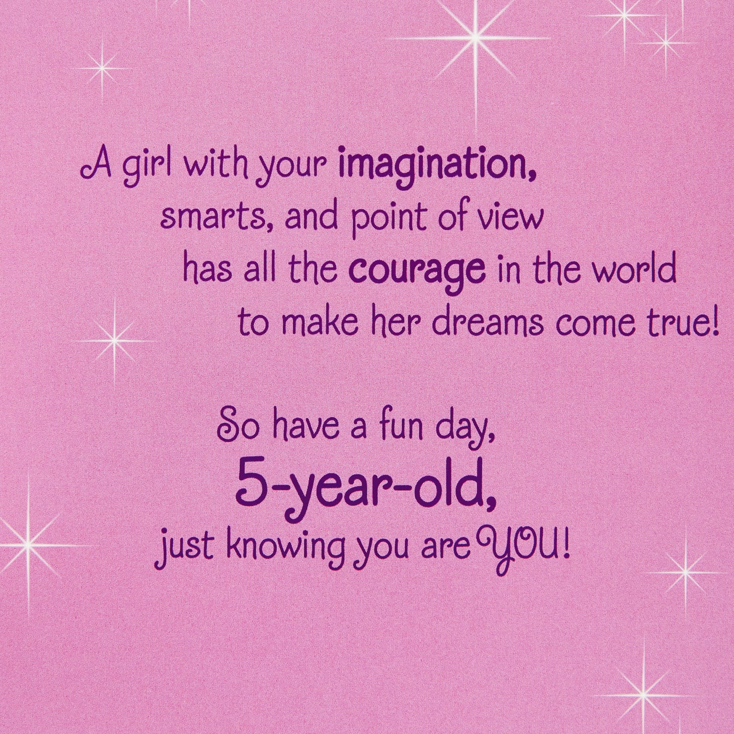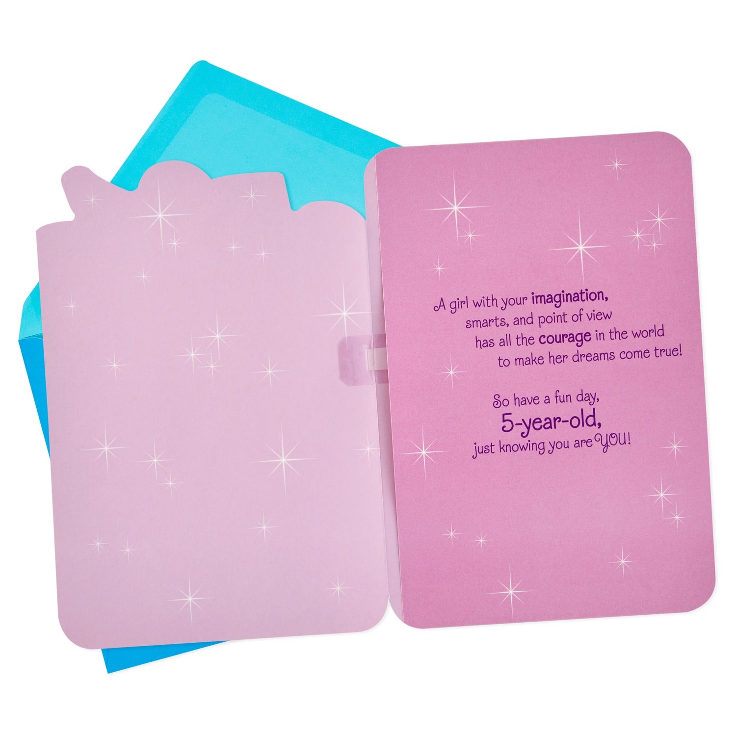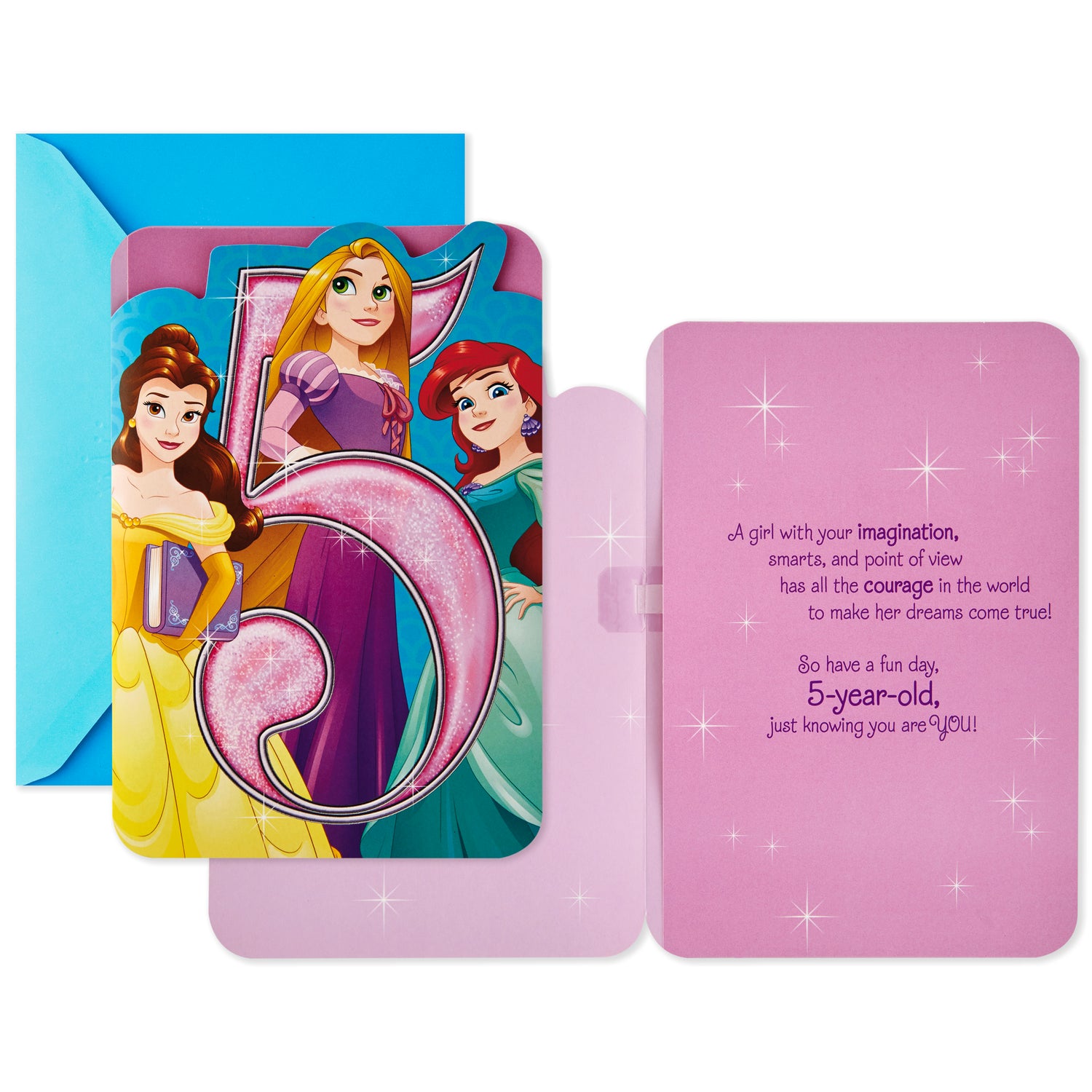 Celebrate a little one who's full of imagination, smarts, and courage on her momentous fifth birthday with a birthday card featuring her favorite Disney princesses.