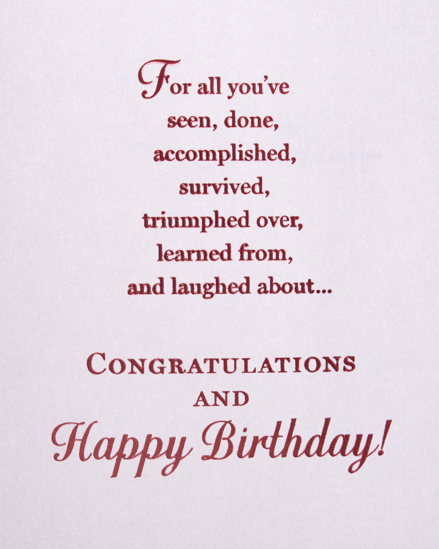 The message on the front of the card reads, "Celebrating 70 Years." Open the card to reveal the inside message, "For all you've seen, done, accomplished, survived, triumphed over, learned from, and laughed about… Congratulations and Happy Birthday!" The card measures 8.3 inches long by 5.8 inches wide made with high quality cardstock paper; an envelope is included.