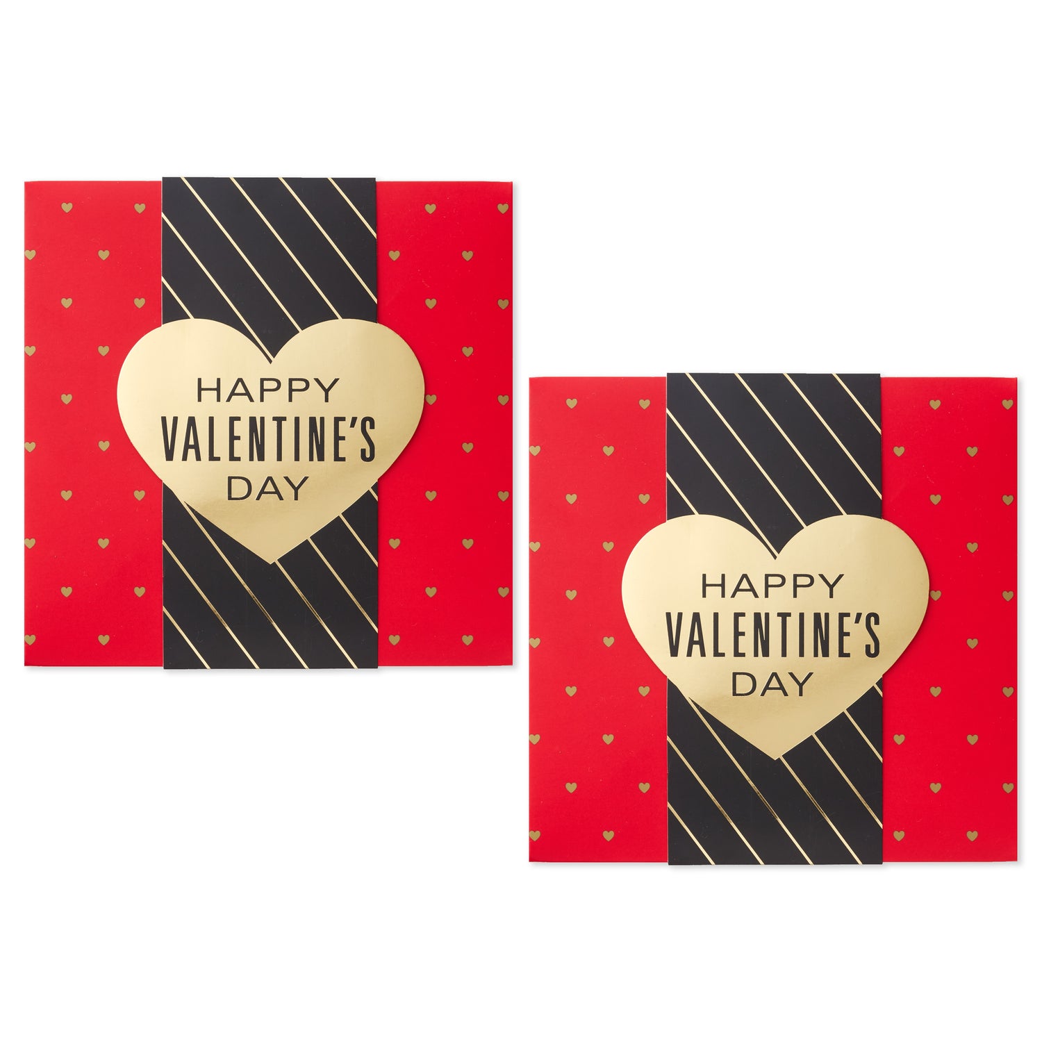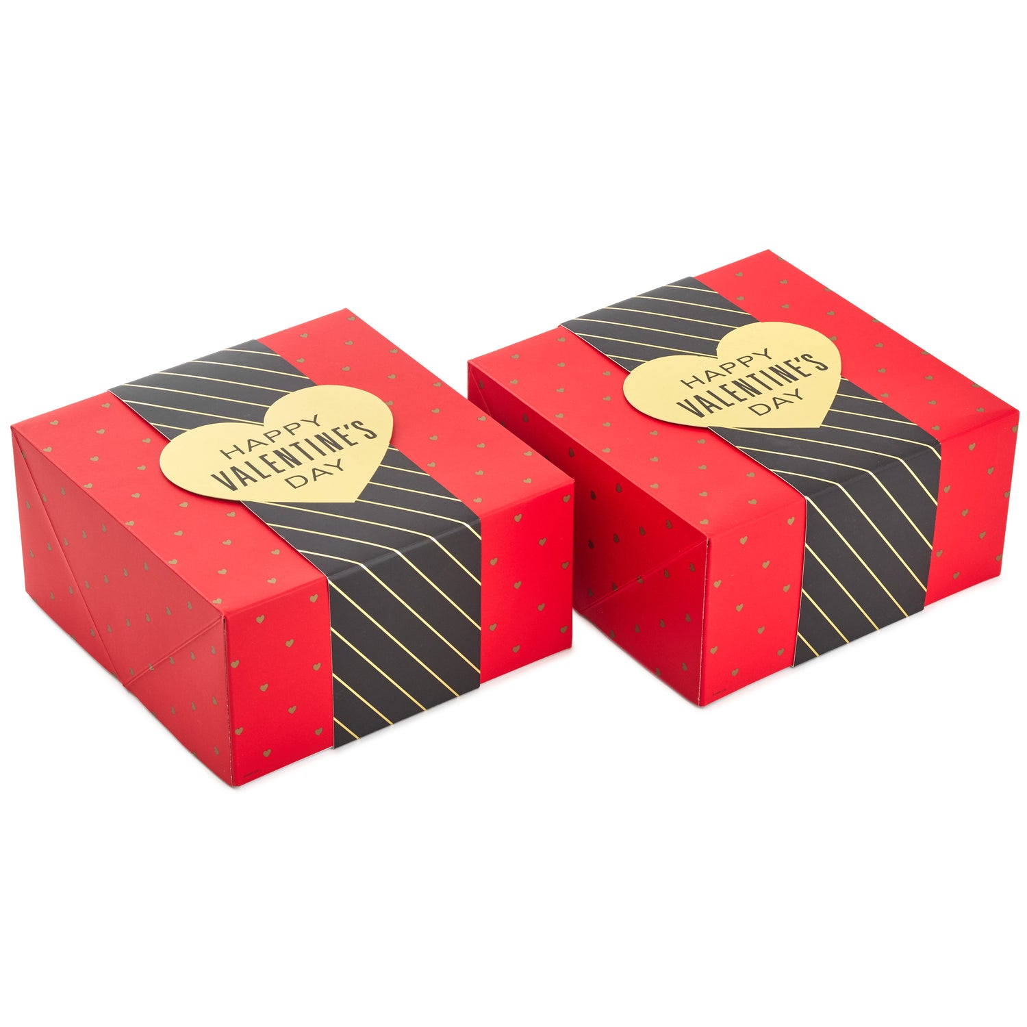 Hallmark 8" Medium Valentine's Day Gift Boxes (Pack of 2: Red with Black and Gold Wrap Band) for Jewelry, Wrapped Candy, Small Toys, Gift Cards