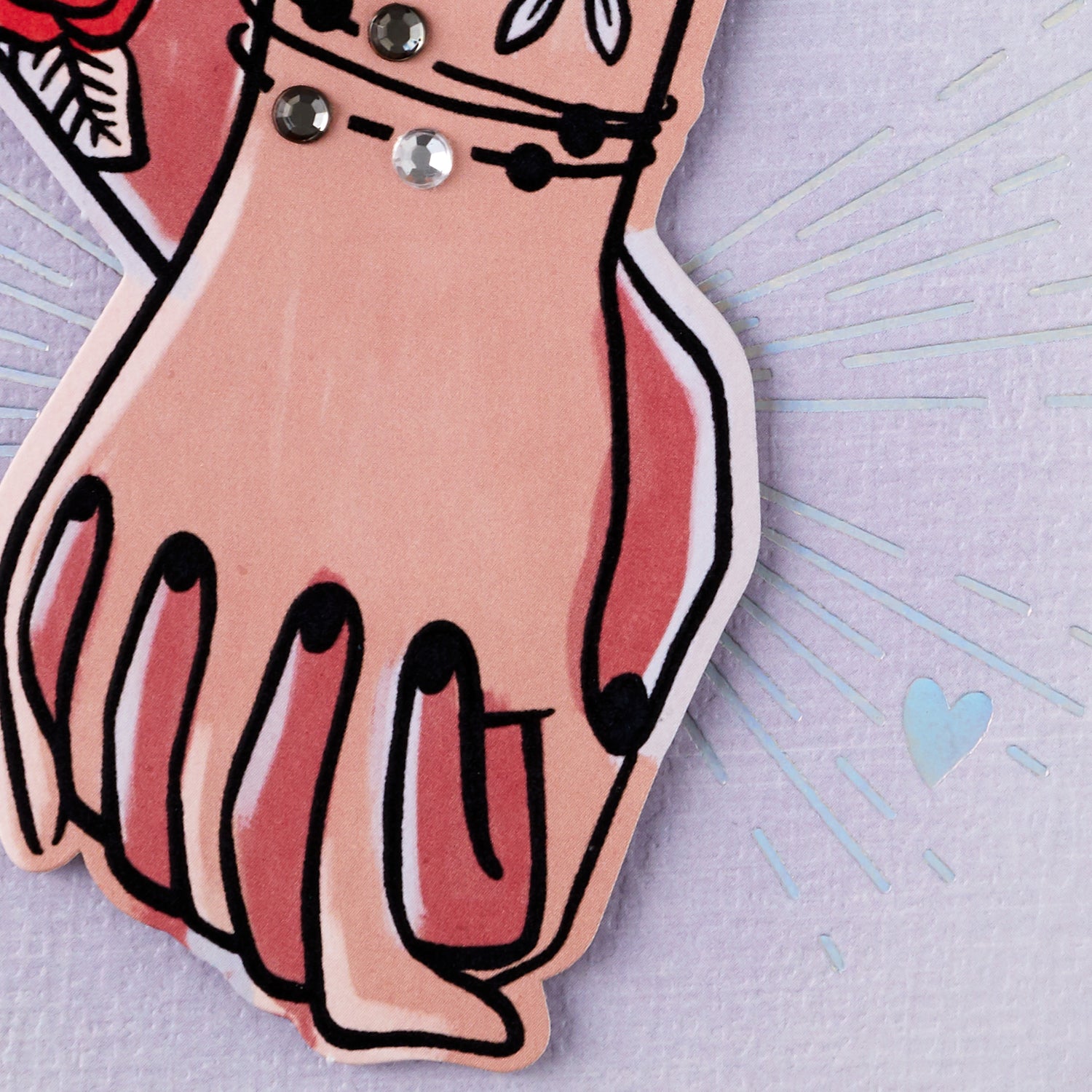 Cover features a gemstone embellished illustration of a couple holding hands with tattoos that read: "Dreamed of you. Found you. Love you."