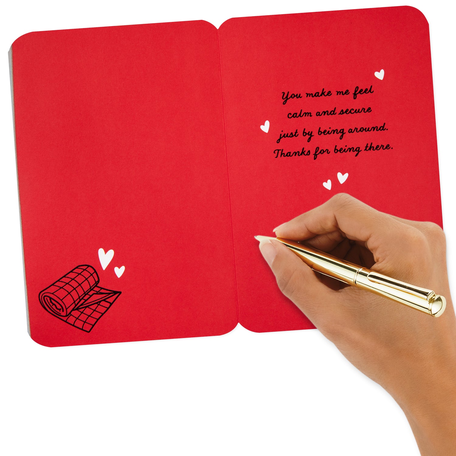 Inside reads: "You make me feel calm and secure just by being around. Thanks for being there."