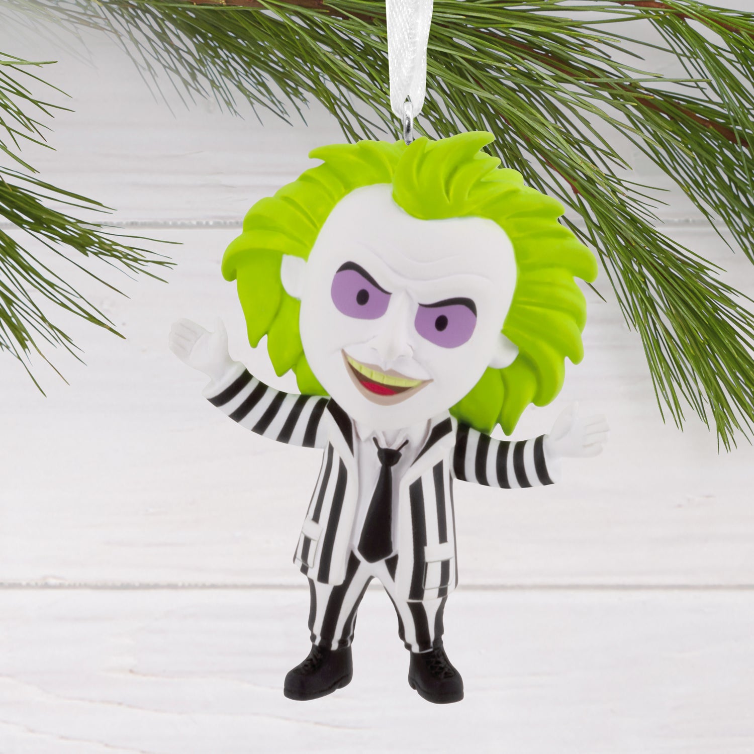 Straight from the grave to your tree, this Hallmark Christmas ornament features the ghost with the most, Beetlejuice, from the classic '80s movie.