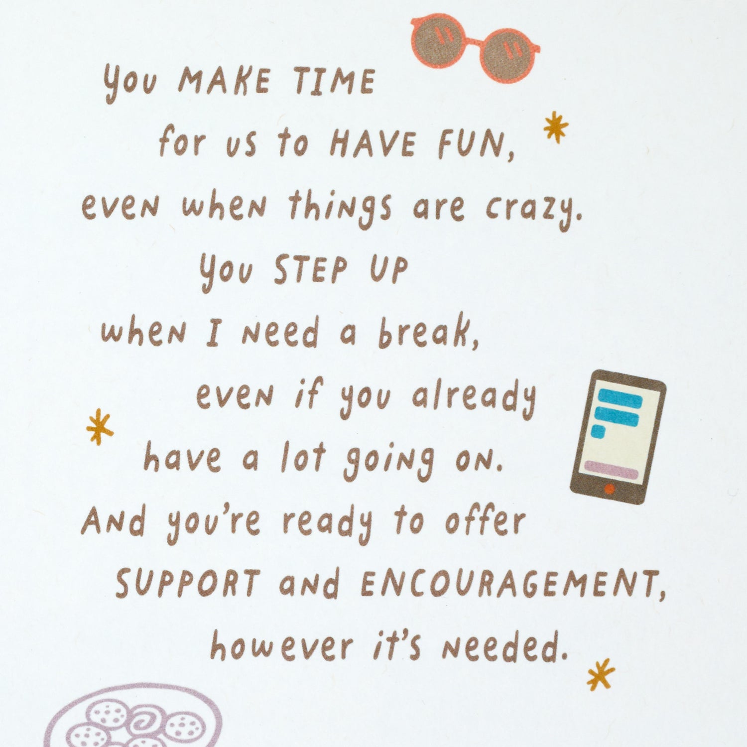 Inside reads: "They say it's the little things that matter most, and we've learned just how much that's true. So on your birthday, I'm celebrating all the little things that make you so amazing . . . You make time for us to have fun, even when things are crazy. You step up when I need a break, even if you already have a lot going on. And you're ready to offer support and encouragement however it's needed. You work so hard and do so much to make life good. And all those little things you do add up to something really big. Something that makes you an incredible man and the best partner I could ever ask for. Happy birthday."