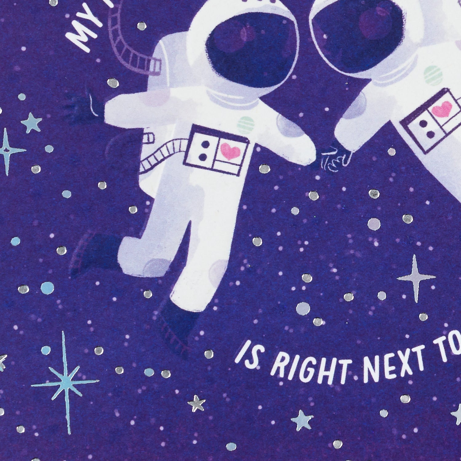 Cover features two astronauts holding hands in space. Message reads: "My favorite place in the universe is right next to you."