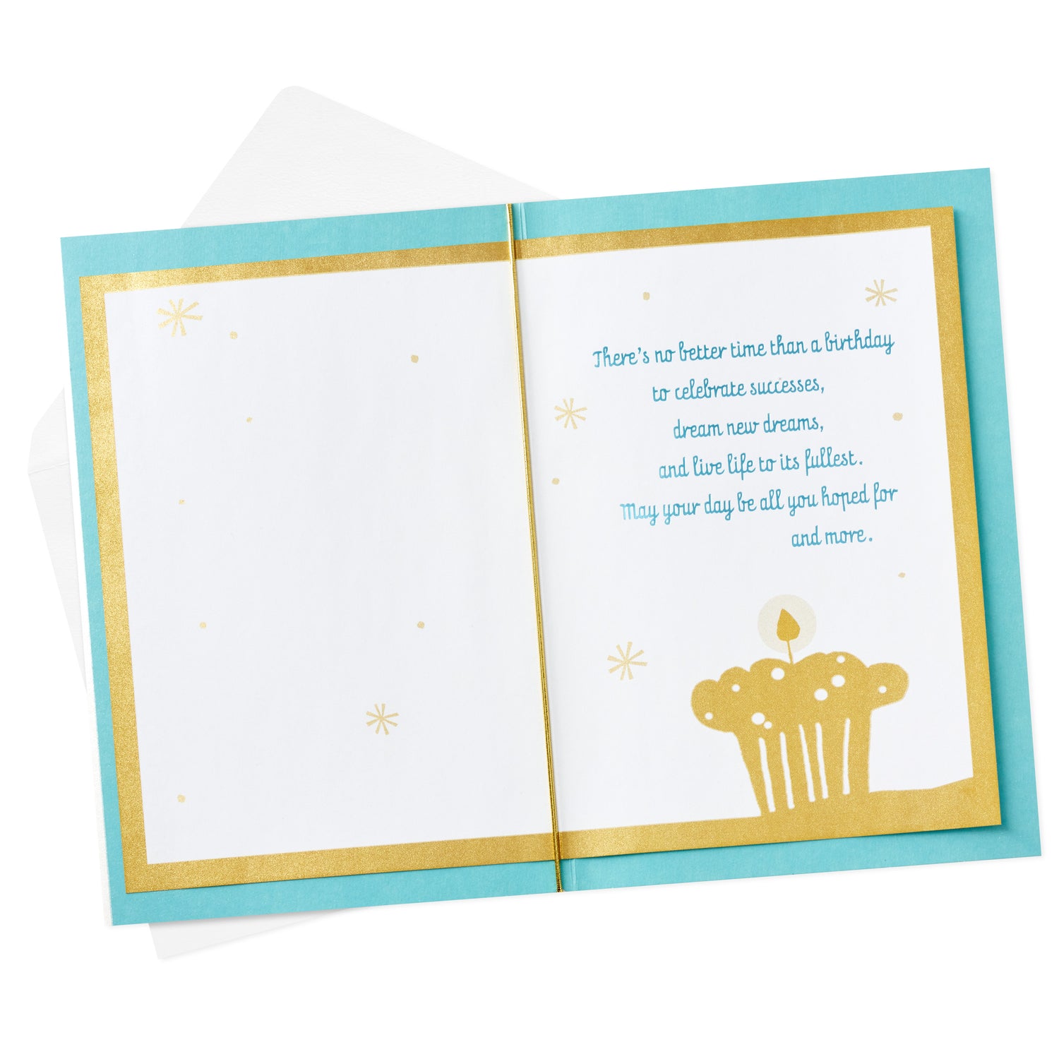 Celebrate a friend's or family member's birthday this year with this card featuring a pretty cupcake with foil and gemstone accents.