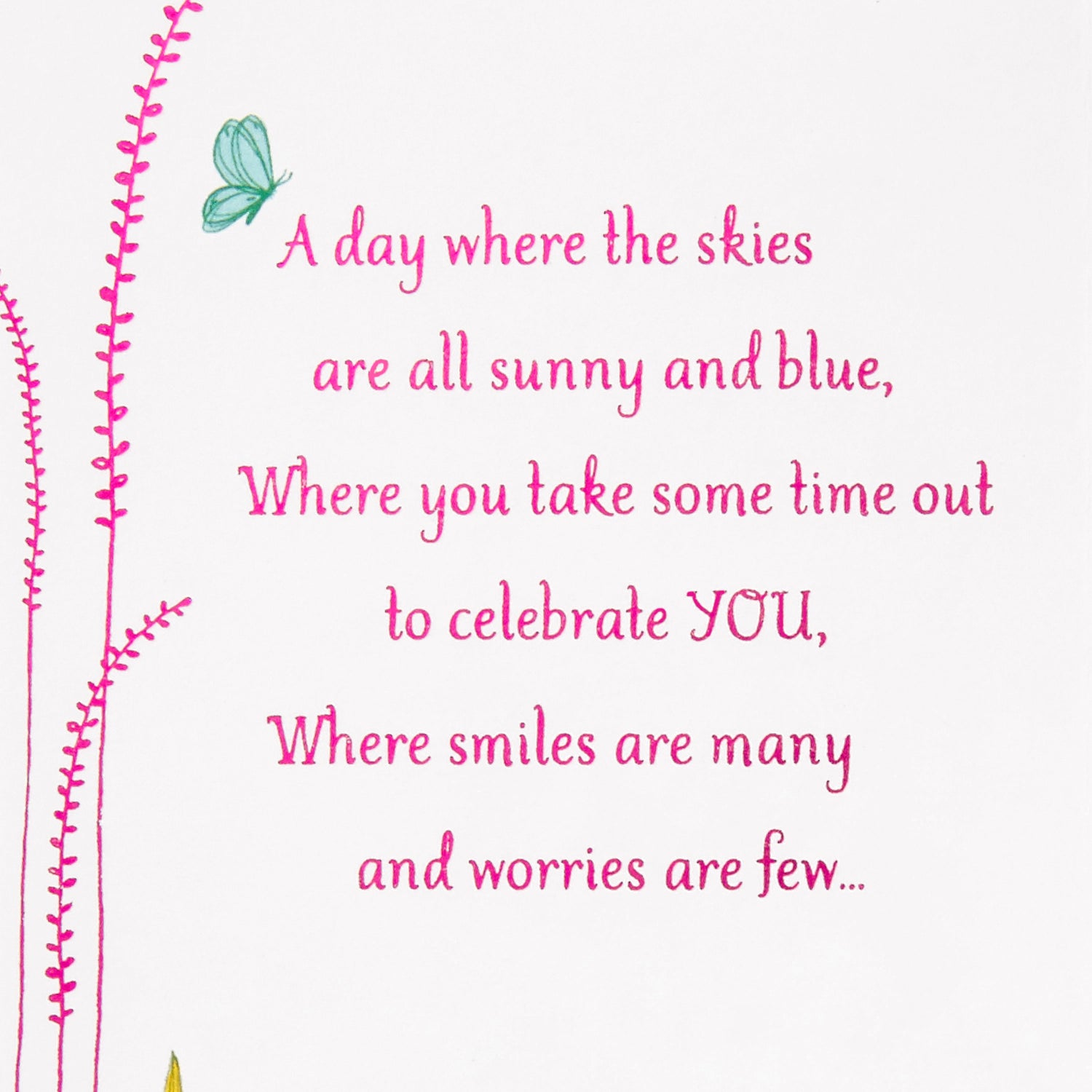 Card features a rhyming message, colorful wildflower design, glitter and foil accents.