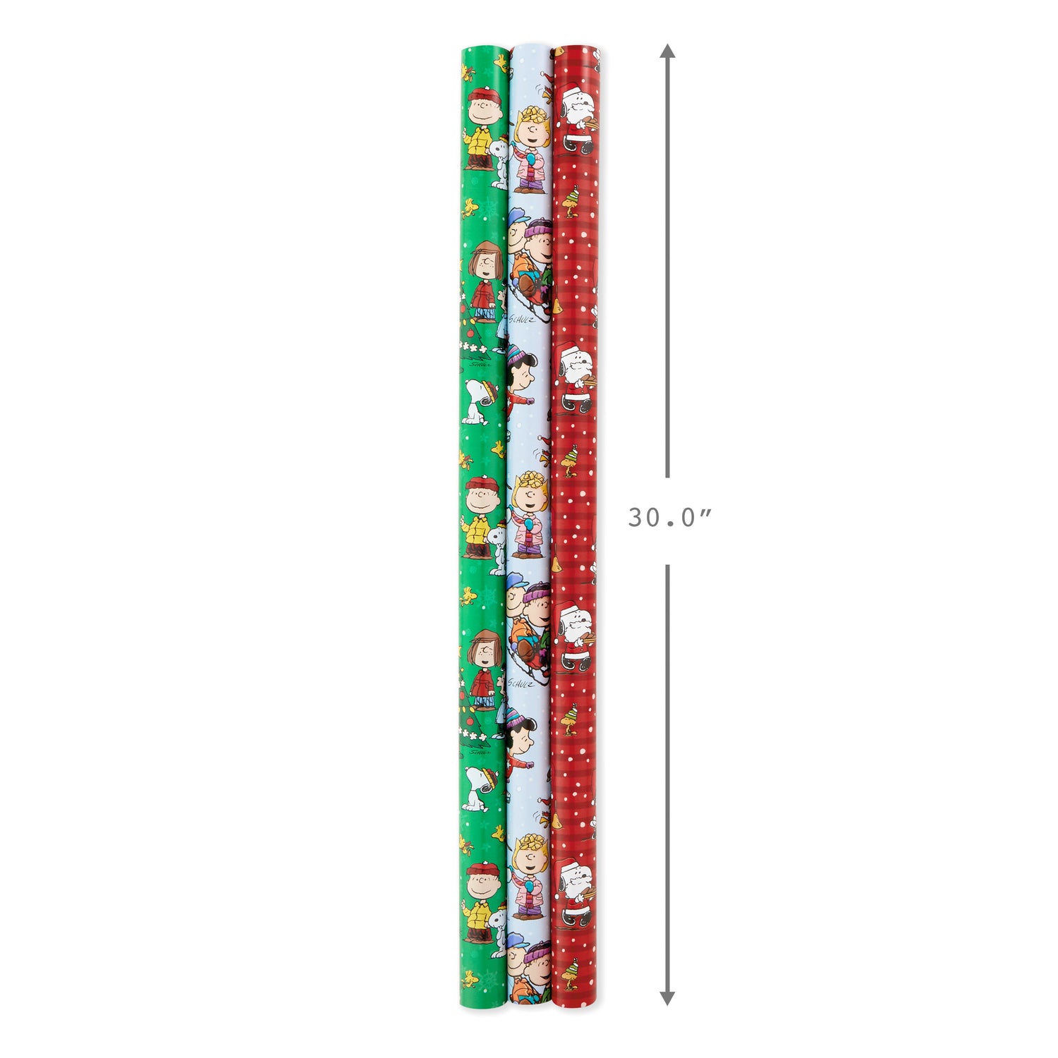 Christmas Peanuts Wrapping Paper with Cut Lines on Reverse (Pack of 3, 105 sq. ft. ttl)
