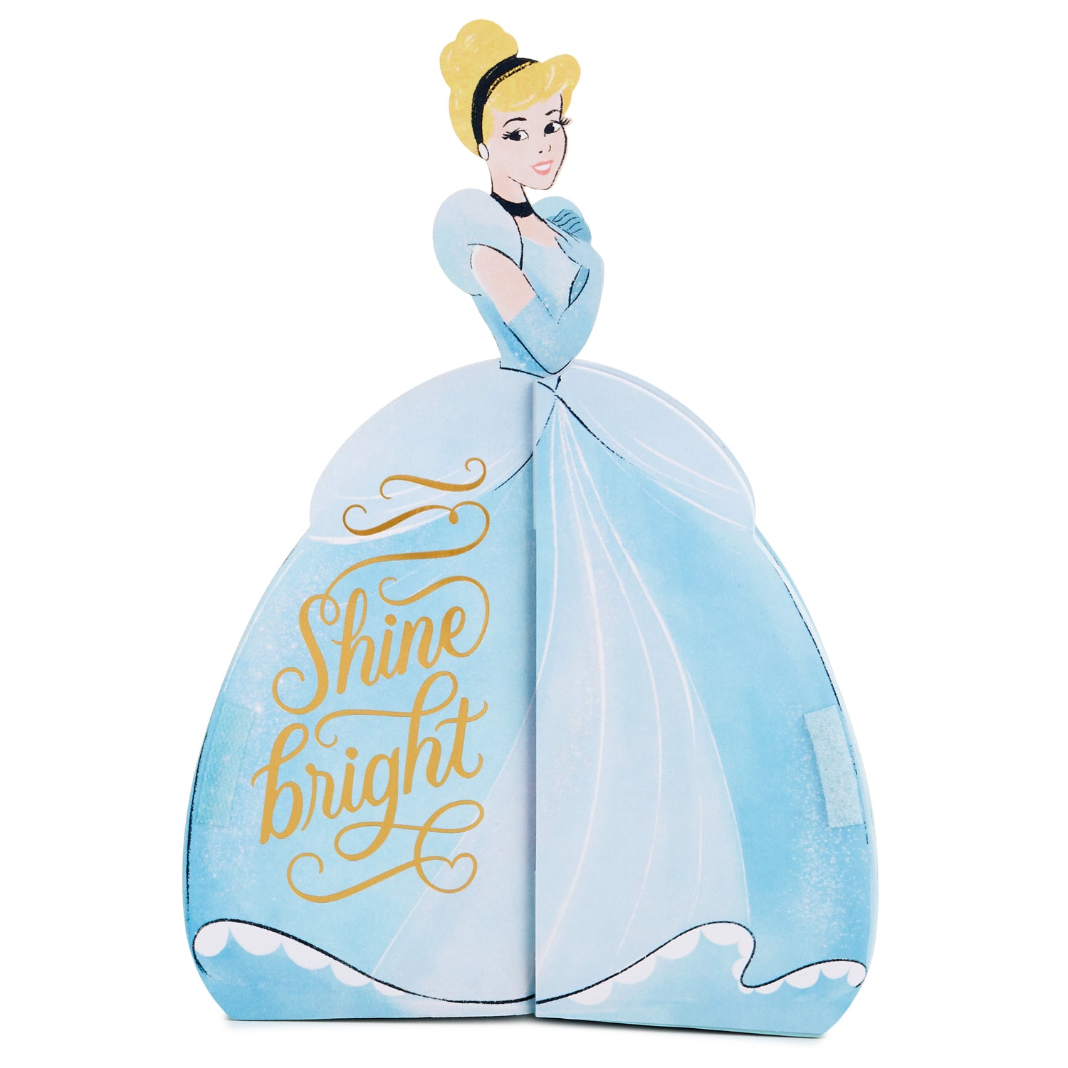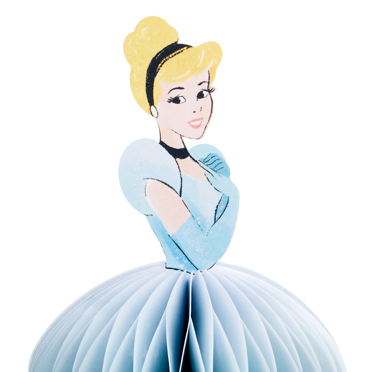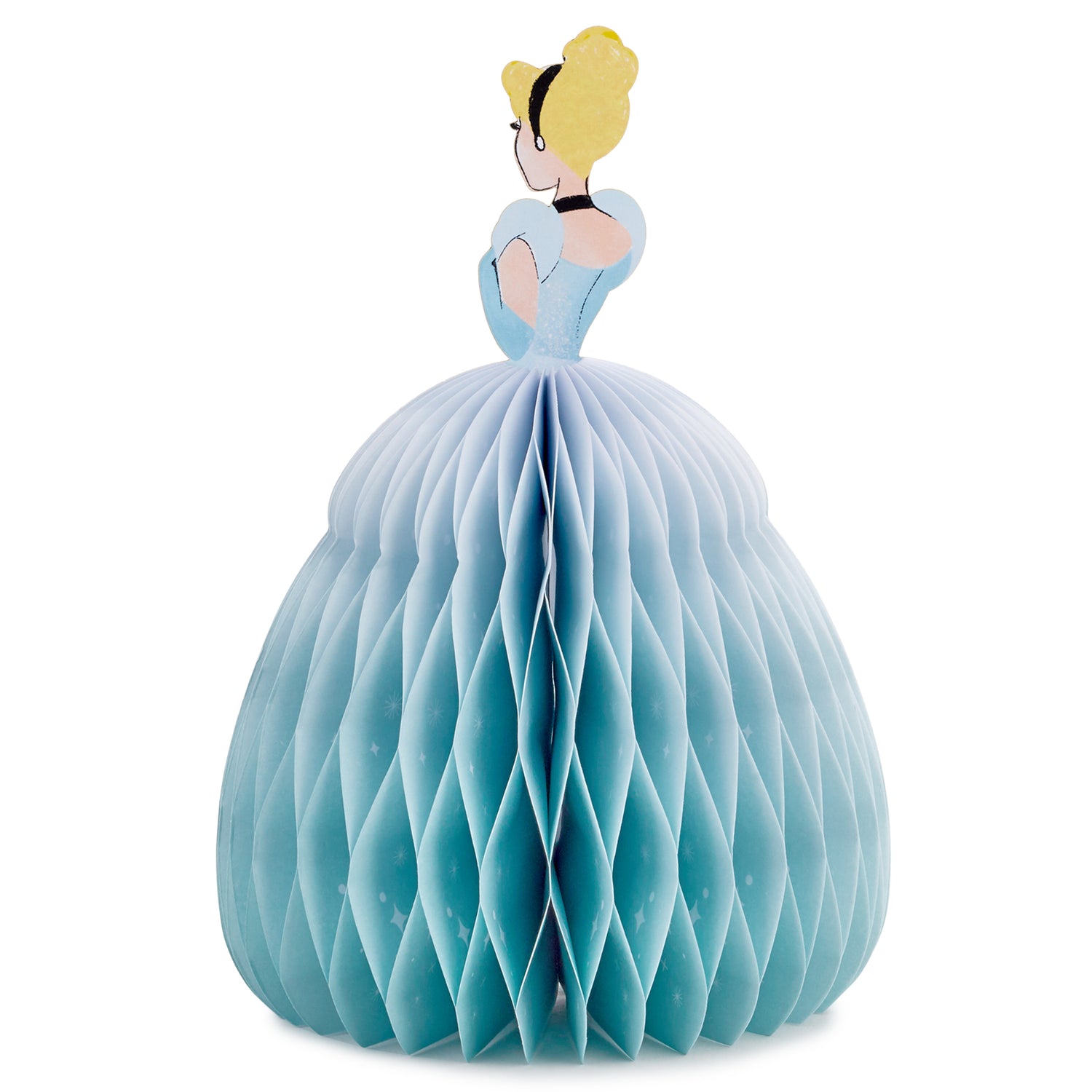 Greeting card arrives flat and unfolds into an exciting 3D honeycomb display of Cinderella in her classic blue ballgown. Card reads: "Shine bright. You make the world a better place just by being you," and includes space for a brief message.