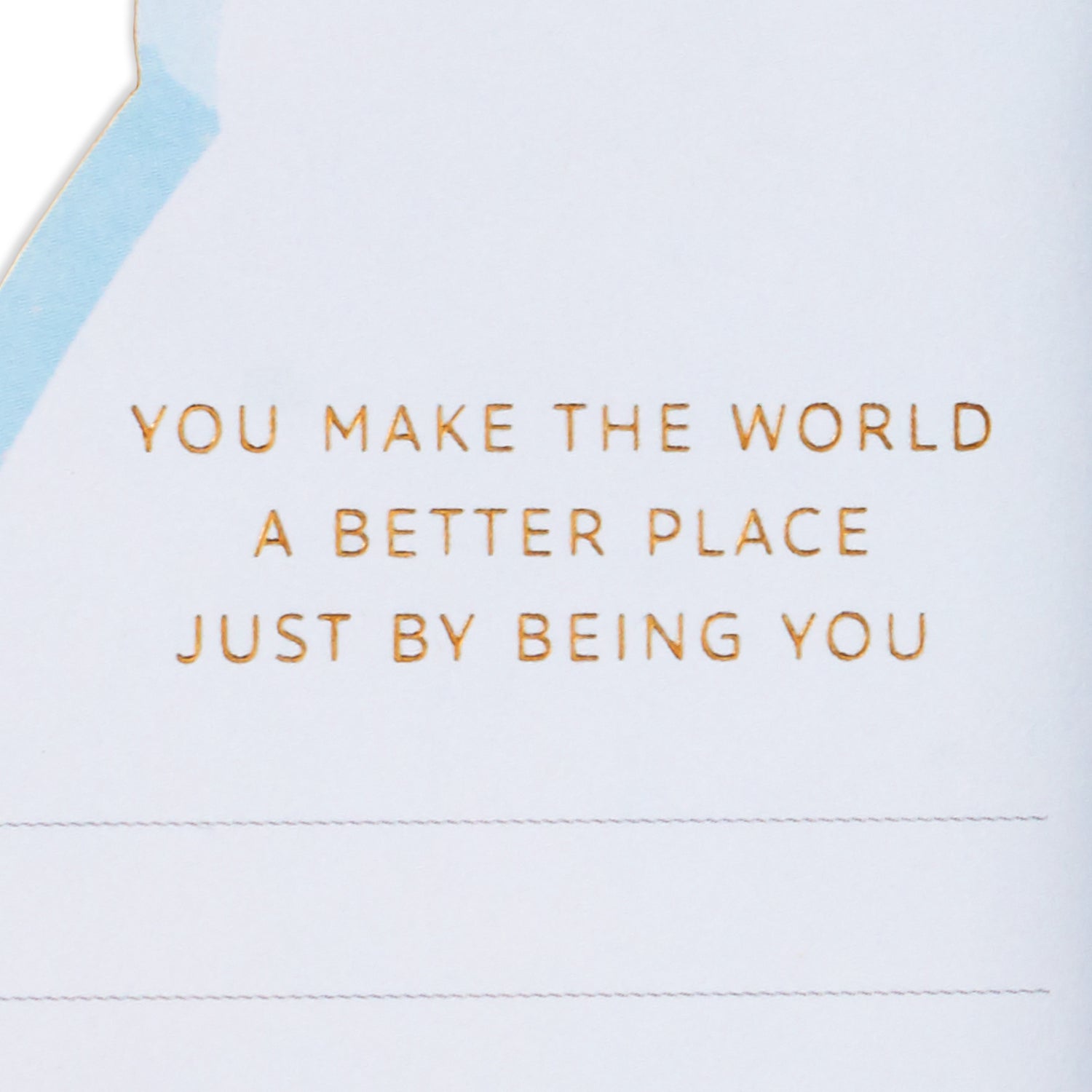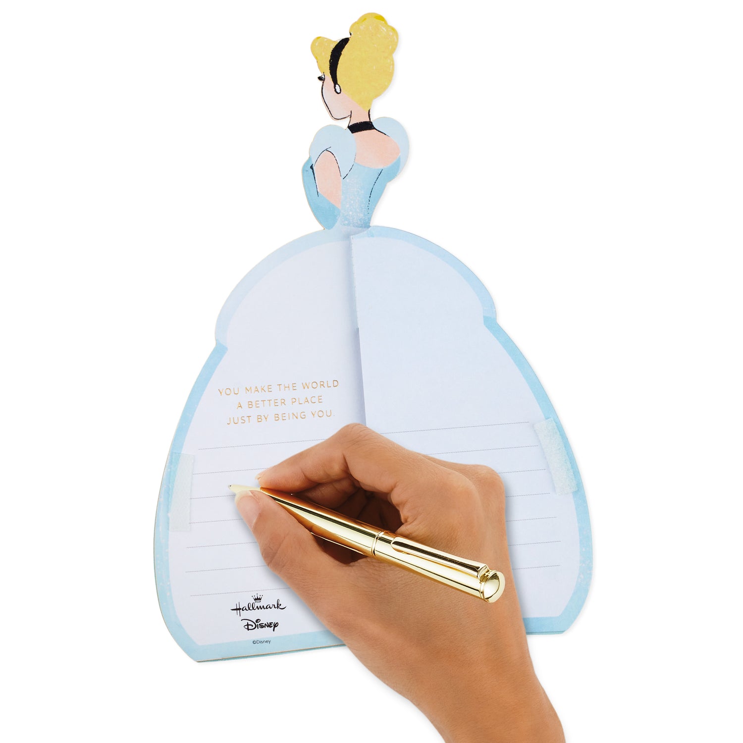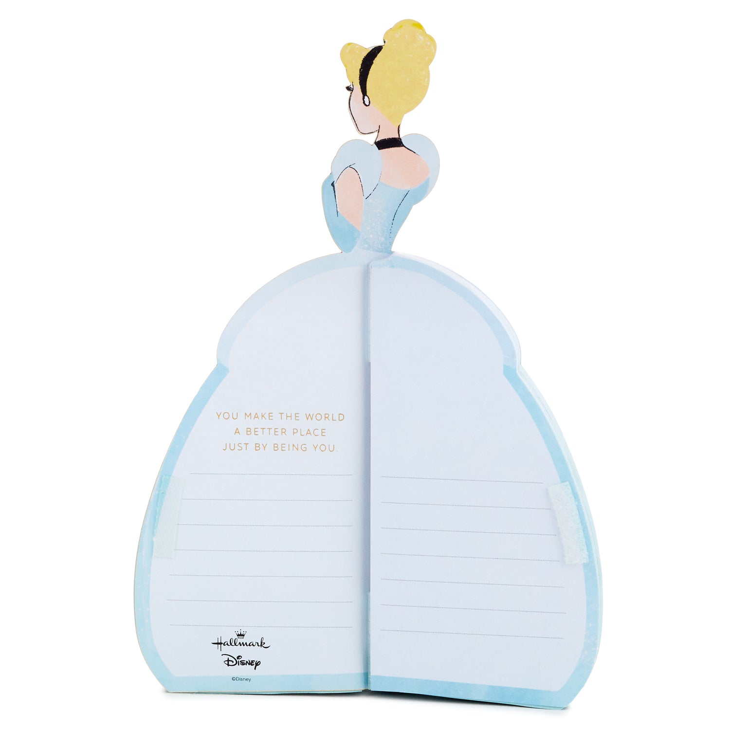 Greeting card arrives flat and unfolds into an exciting 3D honeycomb display of Cinderella in her classic blue ballgown. Card reads: "Shine bright. You make the world a better place just by being you," and includes space for a brief message.