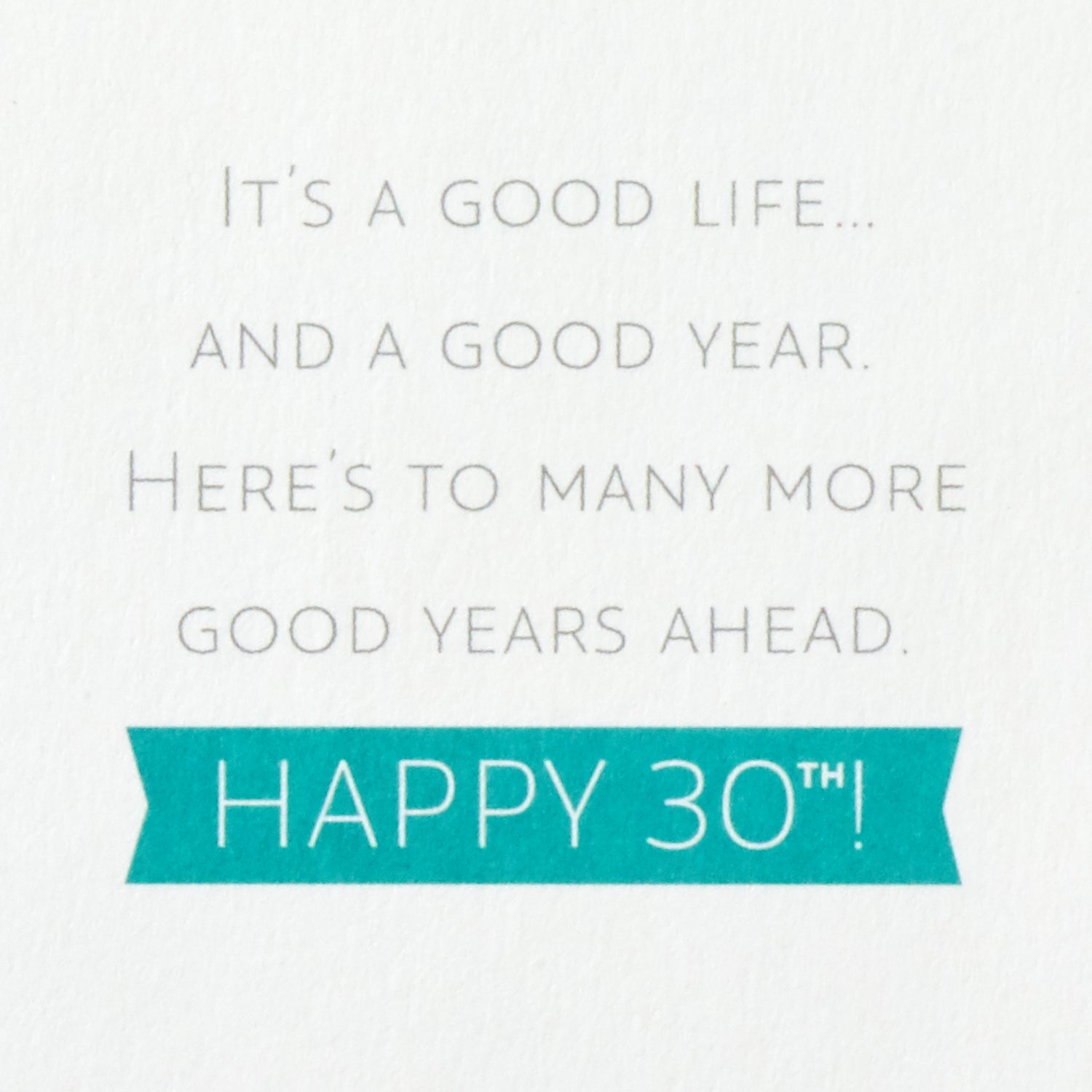 Back of card reads: "It's a good life . . . and a good year. Here's to many more good years ahead. Happy 30th."