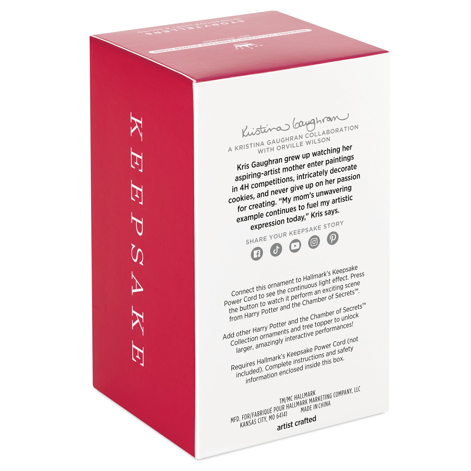 Connect the Storytellers Interactive Light and Sound ornament to Hallmark's Keepsake Power Cord (sold separately) to see a continuous light effect. Press the button to watch it perform a scene. Add other Harry Potter and the Chamber of Secrets Collection ornaments and tree topper to unlock larger, amazingly interactive performances. Ornament plays memorable dialogue from "Harry Potter and the Chamber of Secrets."