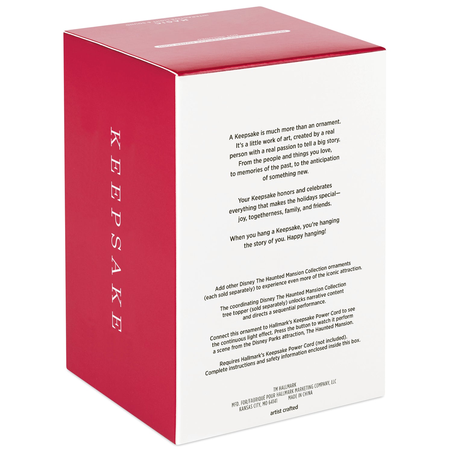 Connect the Interactive Light and Sound ornament to Hallmark's Keepsake Power Cord (sold separately) to see a continuous light effect. Press the button to watch it perform a scene. Add other Disney The Haunted Mansion Collection ornaments (each sold separately) to experience even more of the iconic attraction. The coordinating Disney The Haunted Mansion Collection tree topper (sold separately) unlocks narrative content and directs a sequential performance. Ornament plays music, dialogue and sound effects from the Disney Parks attraction The Haunted Mansion.