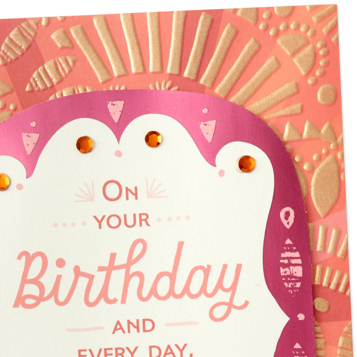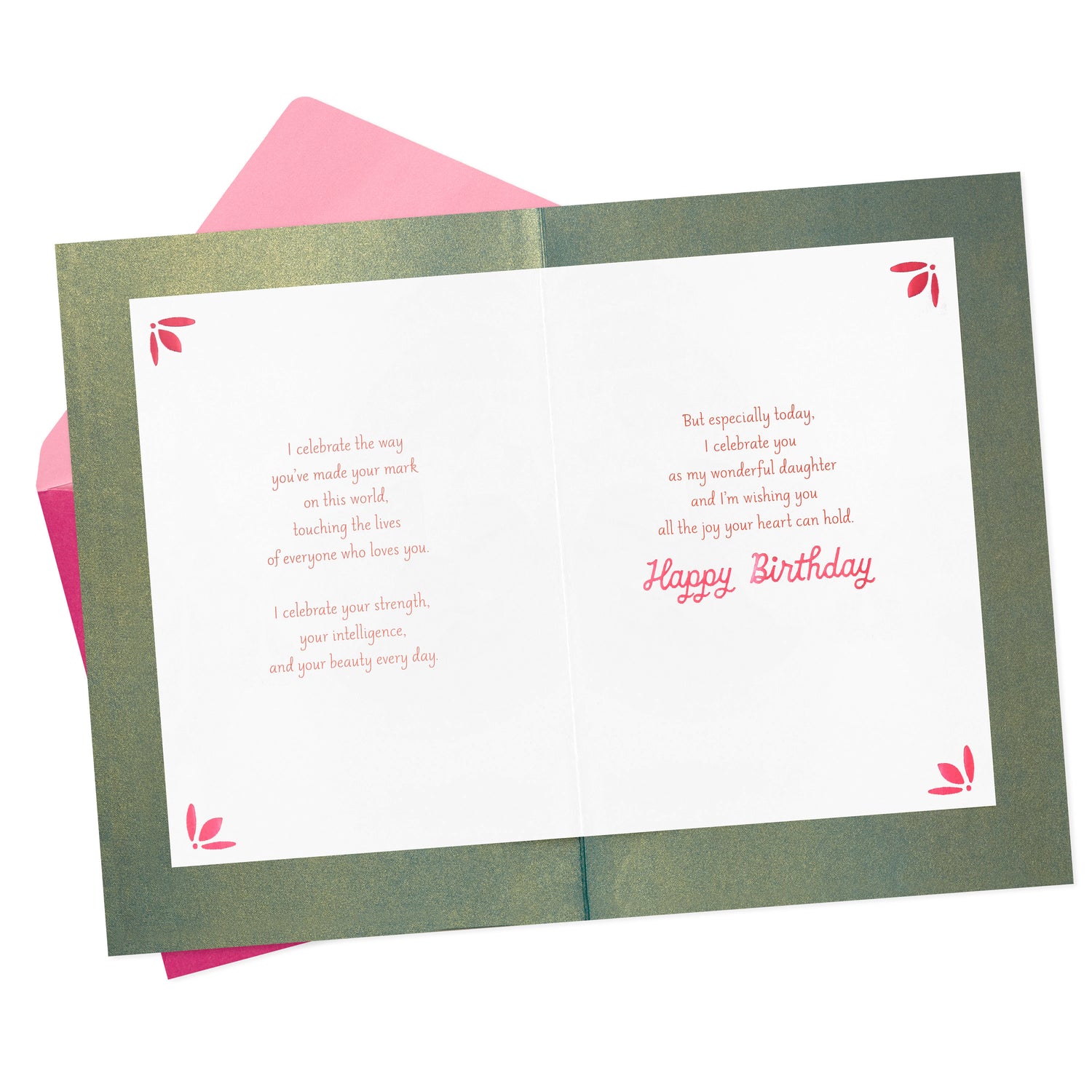 Send warm birthday wishes to your daughter with a card featuring sequin and foil embellishments that tells her how much you love her.