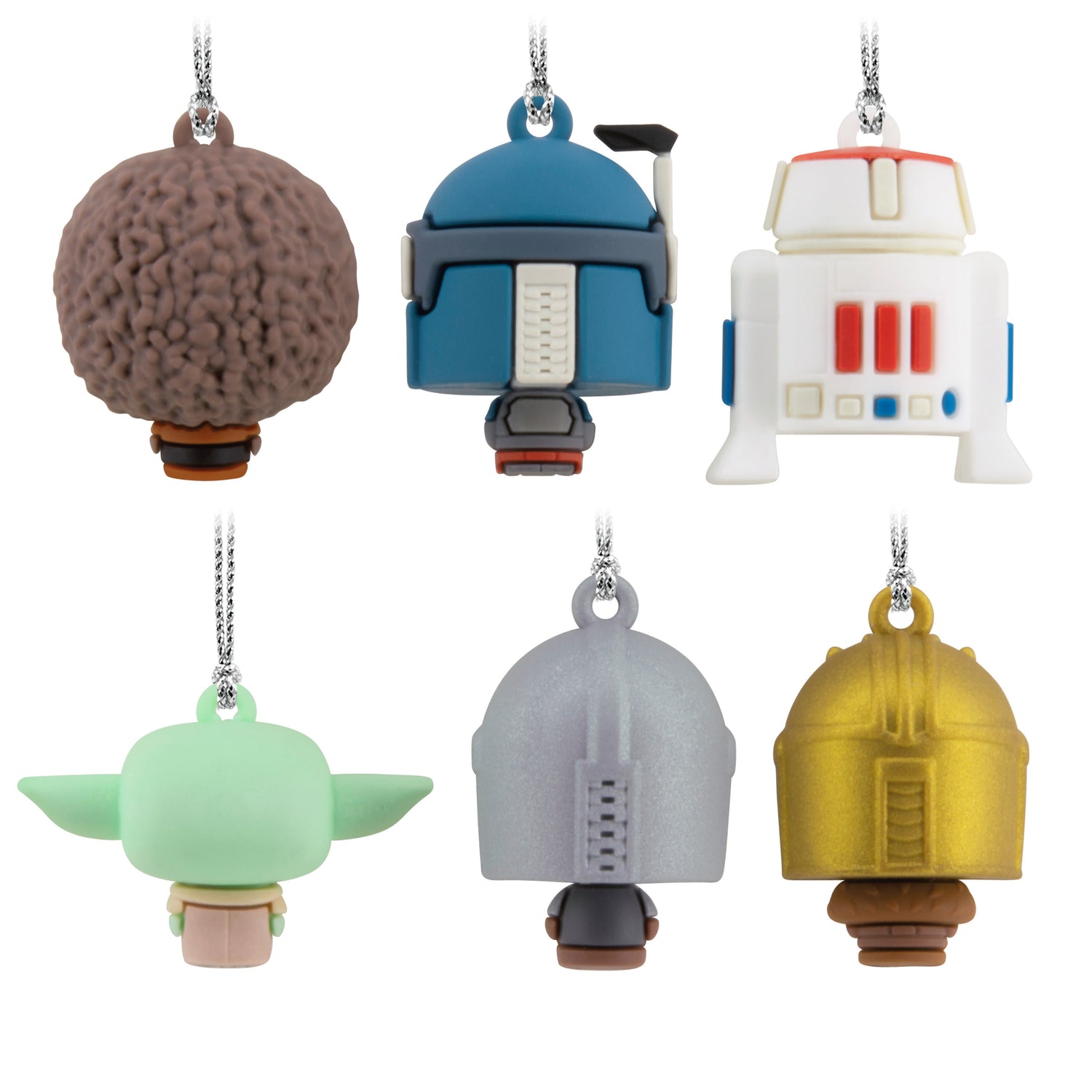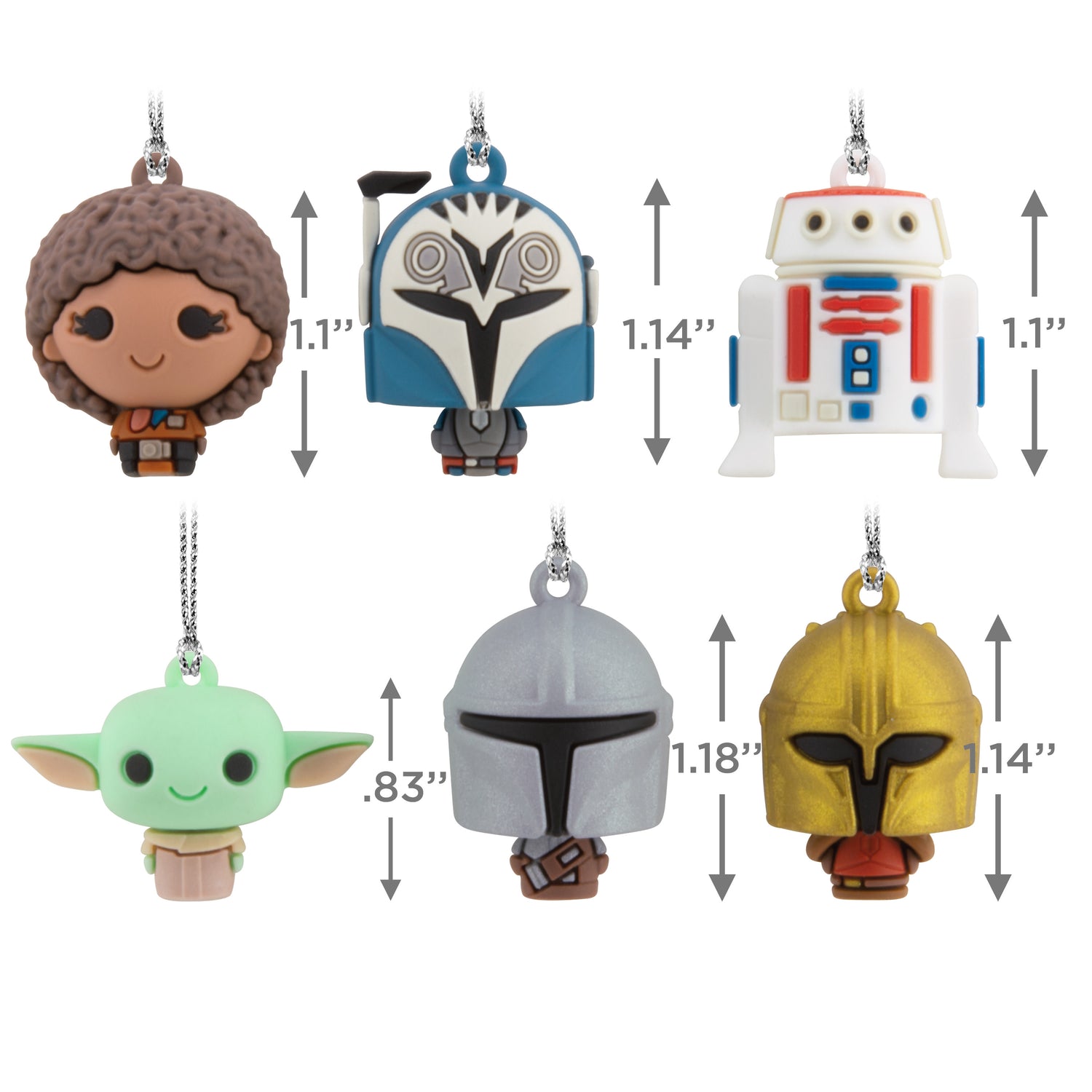 Relive the excitement of "Star Wars: The Mandalorian" with these shatterproof Hallmark Christmas ornaments. Set of 6 mini designs includes Peli Motto, Bo-Katan Kryze, R5-D4, Grogu, The Mandalorian and The Armorer.