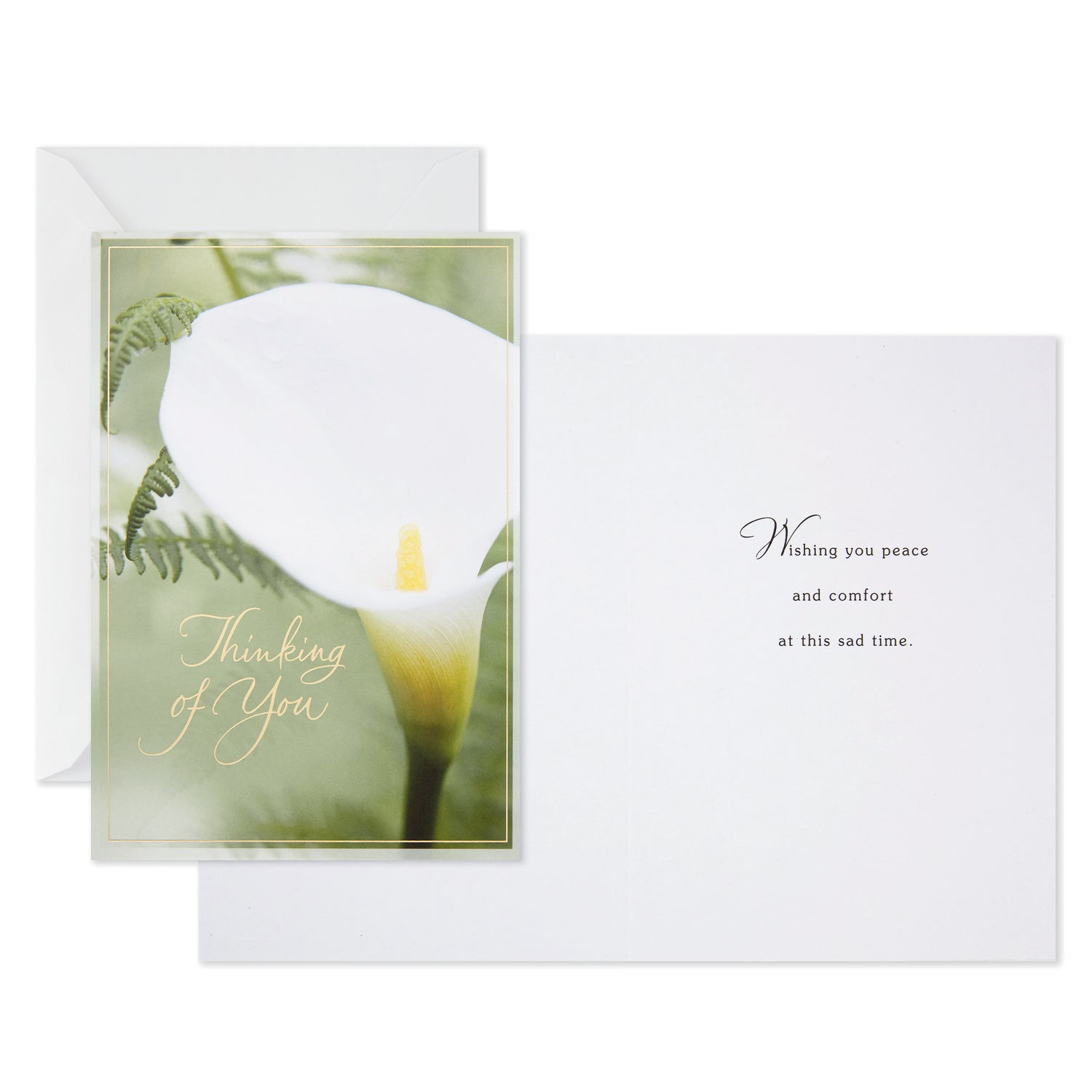 Message: Calla lily design: Thinking of You; Wishing you peace and comfort at this sad time.