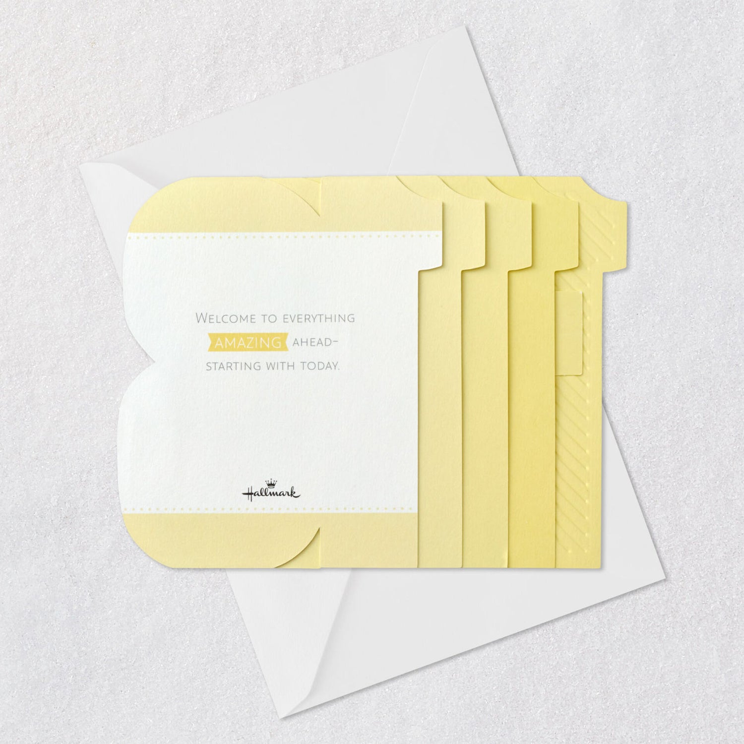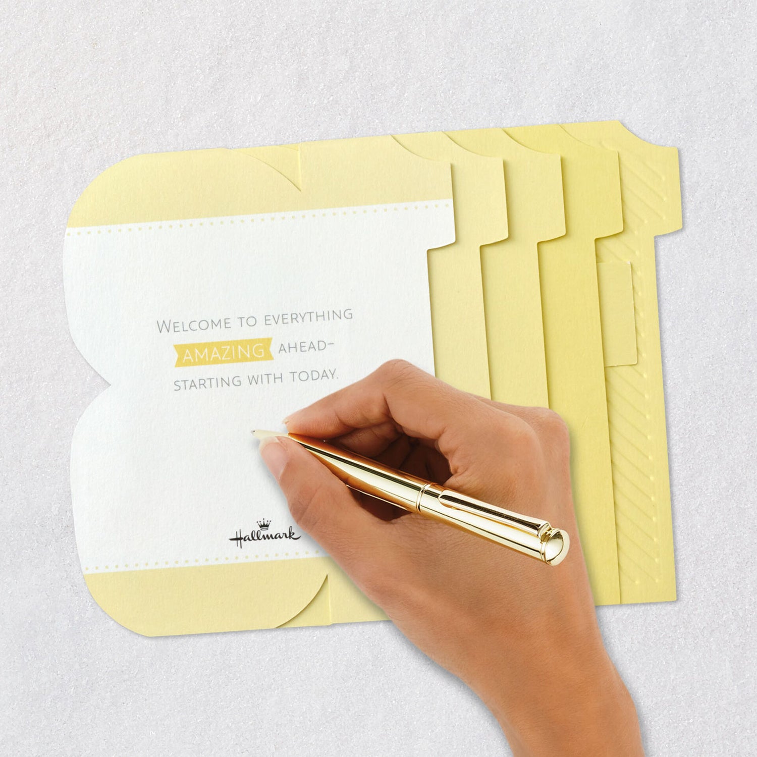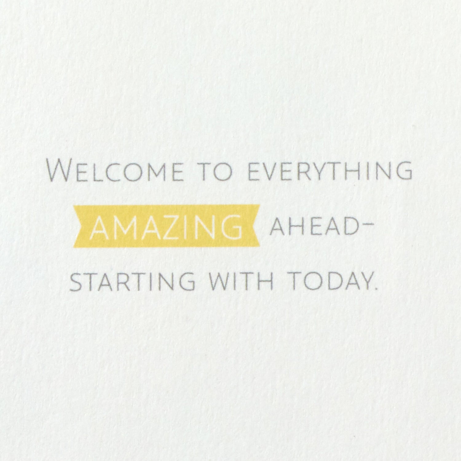 Back of card reads: "Welcome to everything amazing ahead—starting with today."