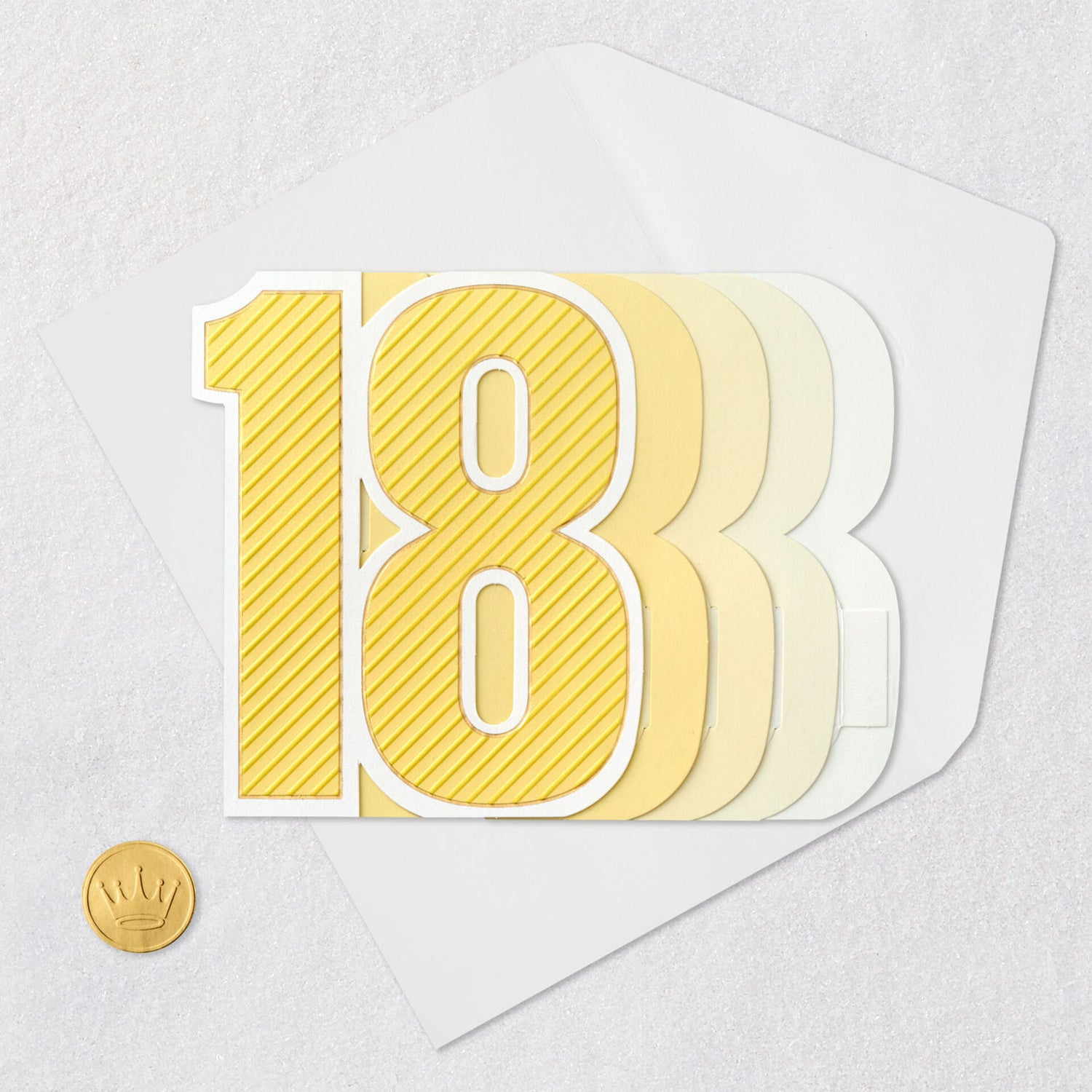 Card arrives flat and pops up into a 3D yellow number 18, accented with gold foil.