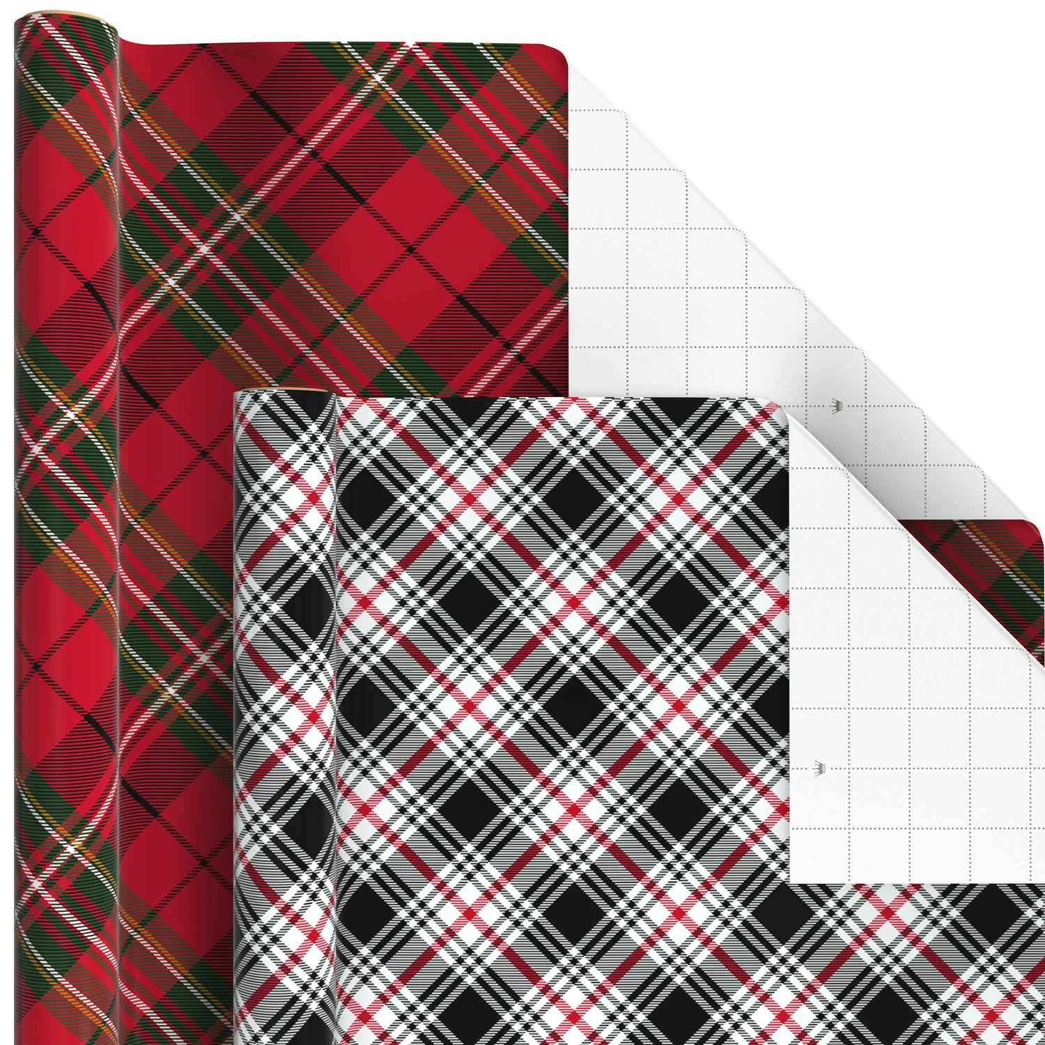 CUT LINES ON BACK: Each roll of plaid wrapping paper features grid lines on the reverse side for straight cutting and perfectly wrapped presents under the tree