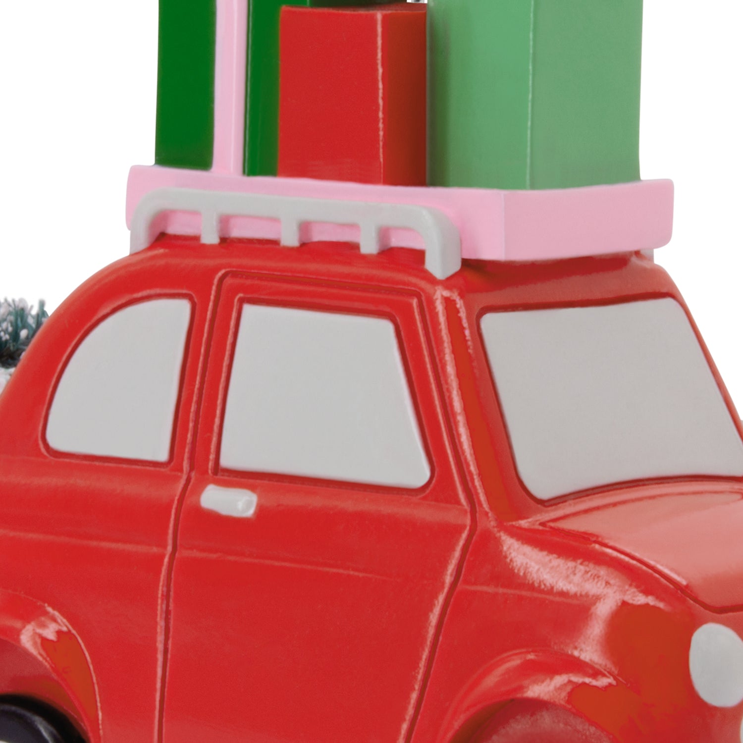 Add a homemade touch to your holiday decor with this charming Hallmark Christmas ornament. Premium decoration features a red car carrying holiday gifts on the roof.