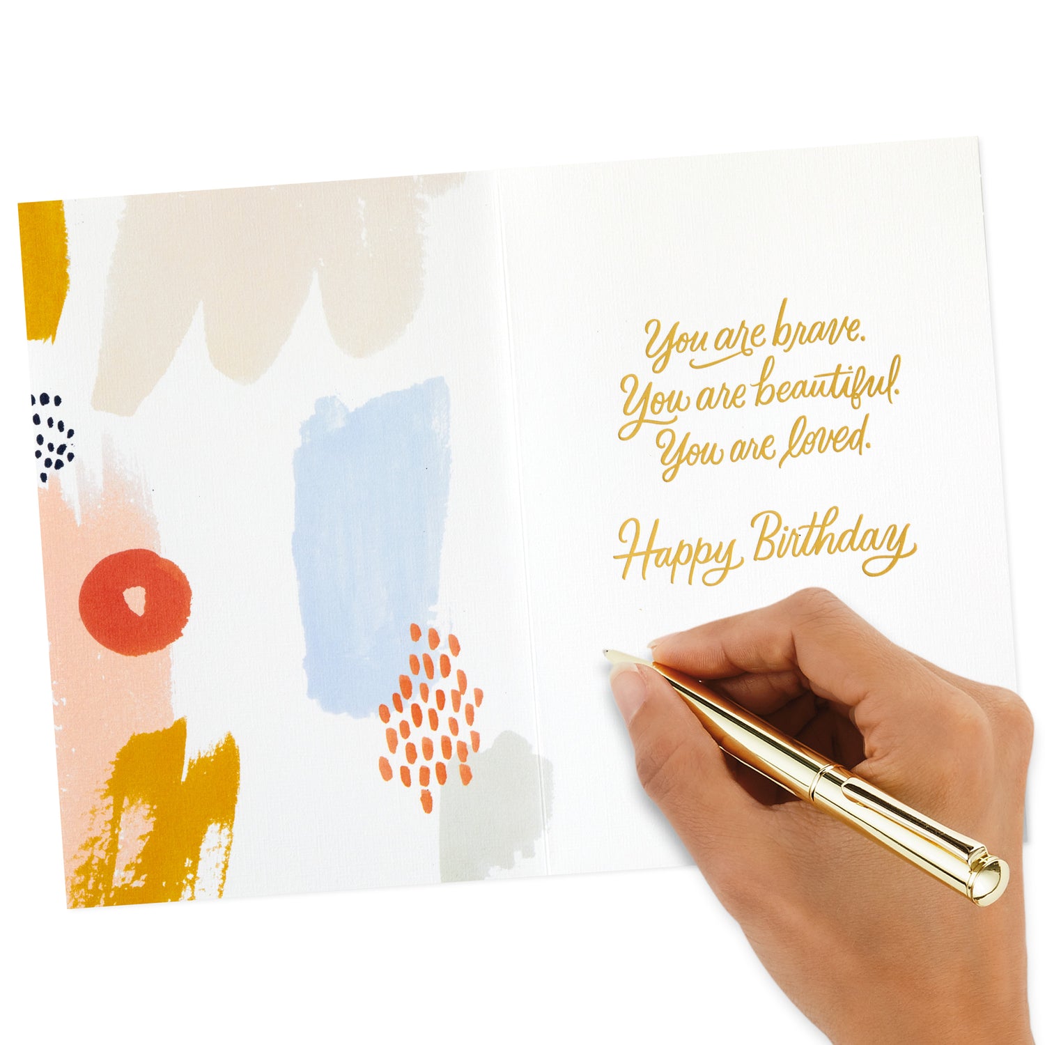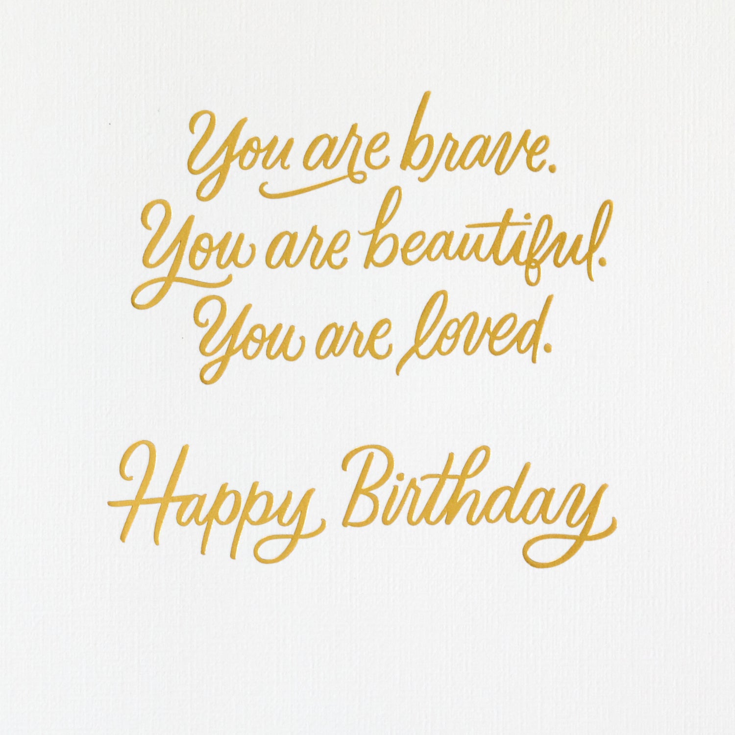 Inside reads: "You are brave. You are beautiful. You are loved. Happy birthday."