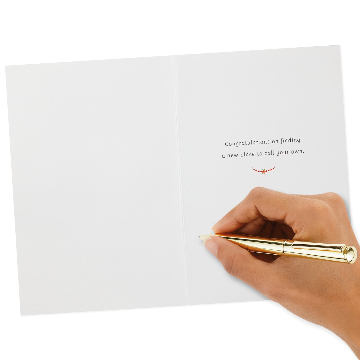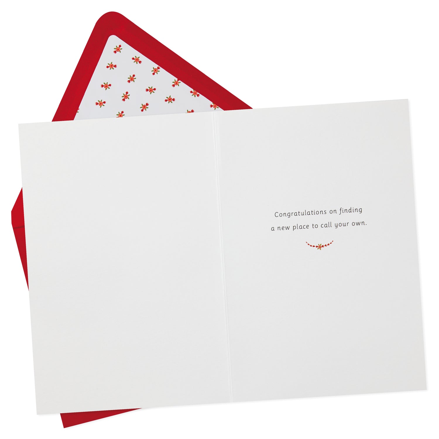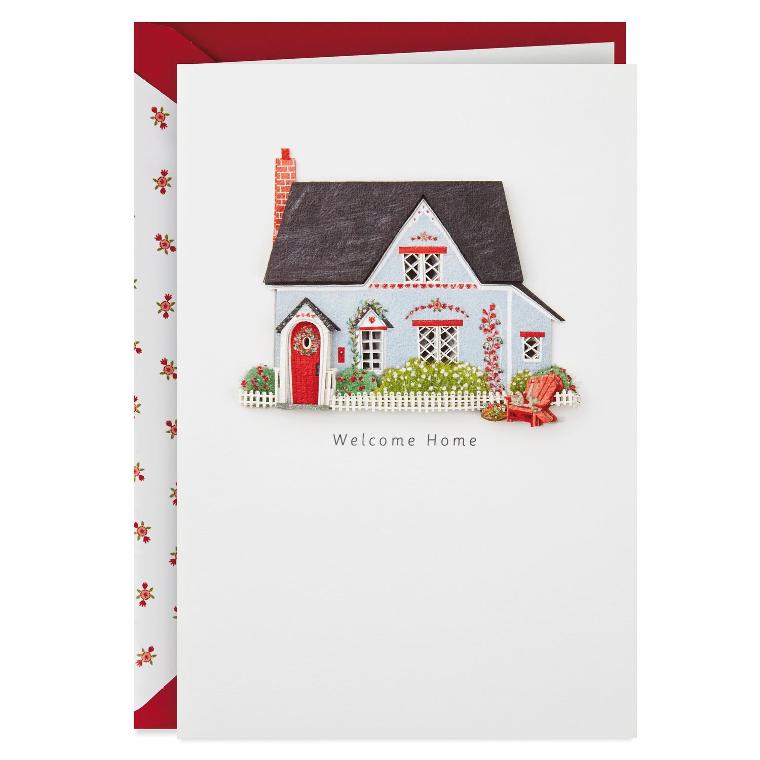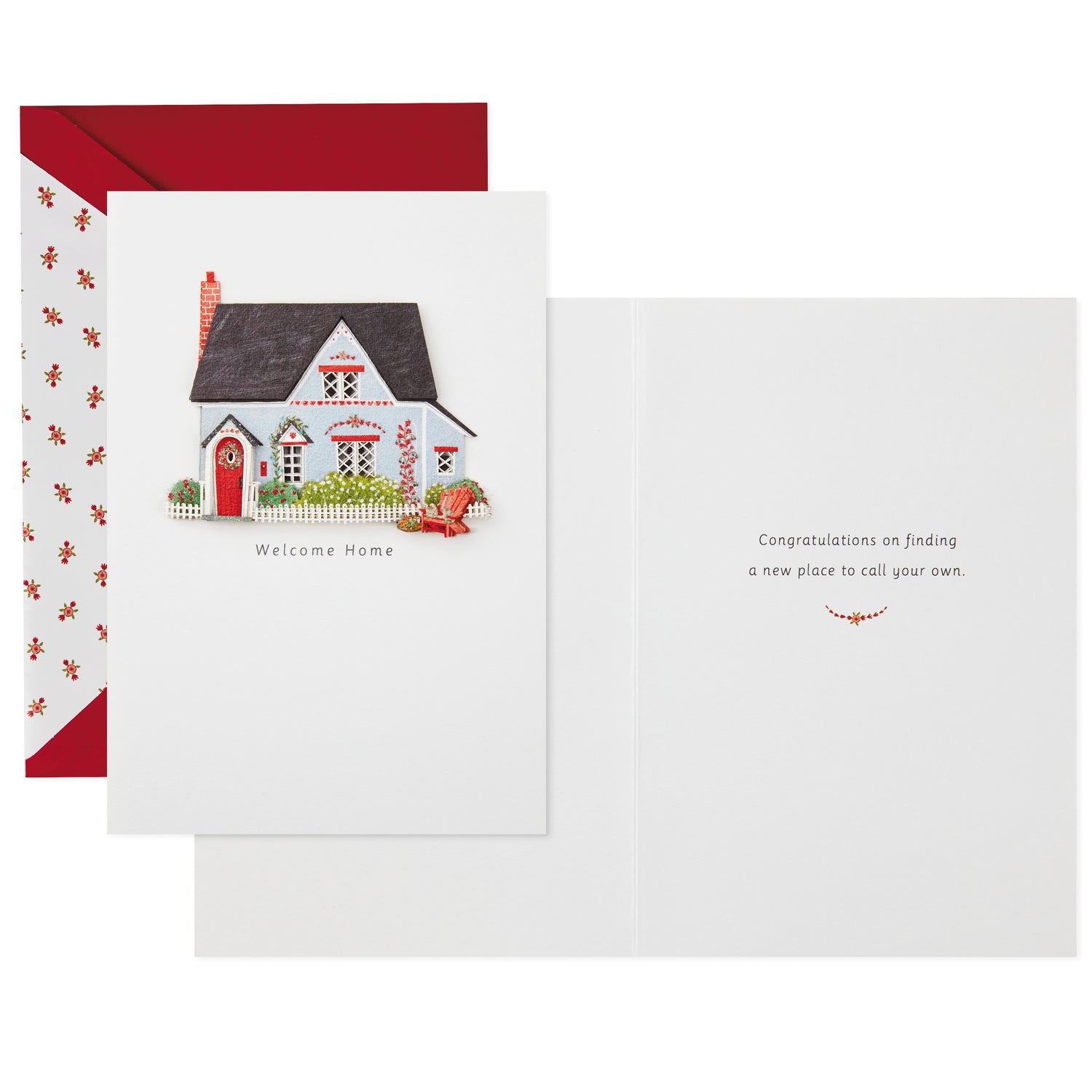 This sweet housewarming congratulations card features laser-cut attachments of a cute house, fence and Adirondack chair.