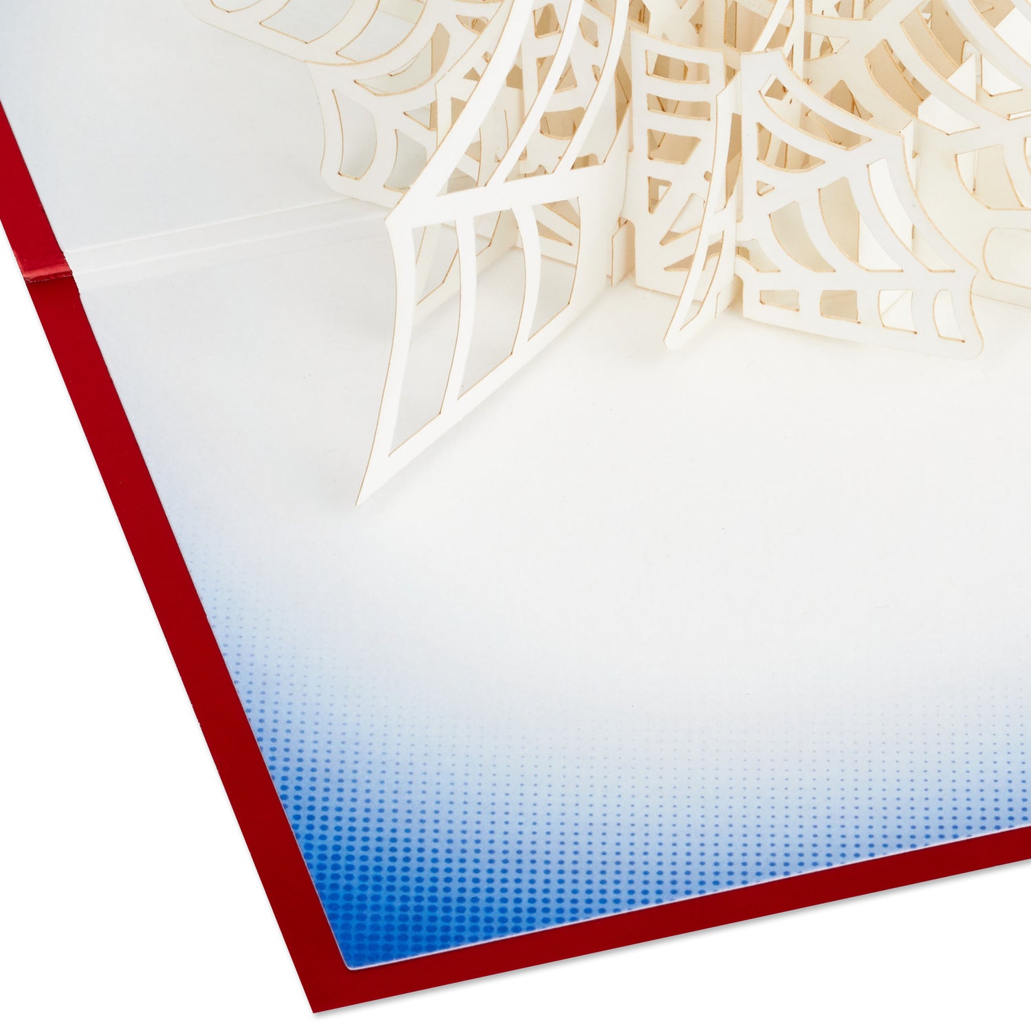 Spider-Man pop up card measures 5" x 7.2" and comes with a coordinating envelope. Printed on high quality paper stock, Hallmark's eco-friendly cards are made with paper from well-managed forests.
