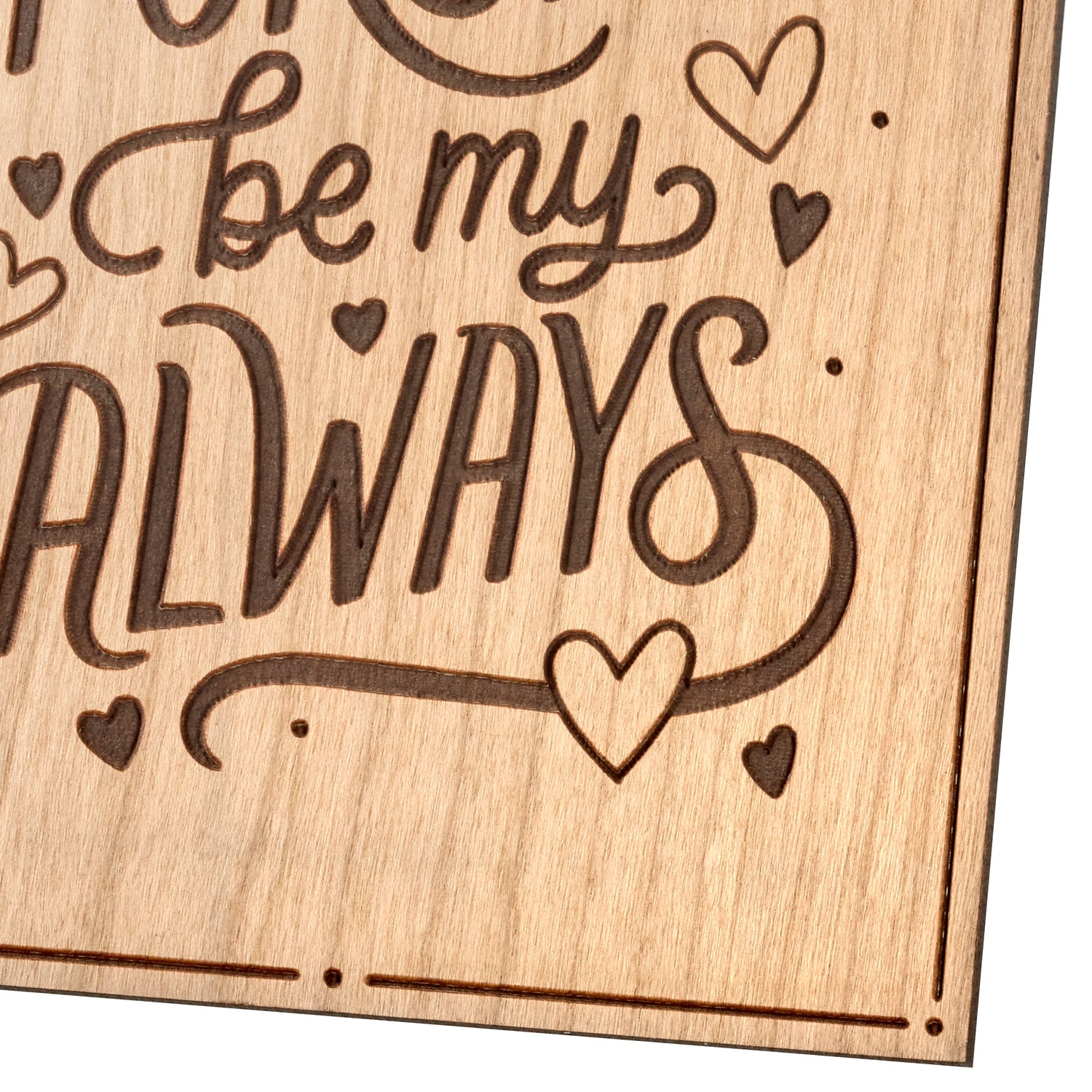 Wooden cover features etched hearts and lettering that reads: "You will forever be my always." Inside reads: "Love you."