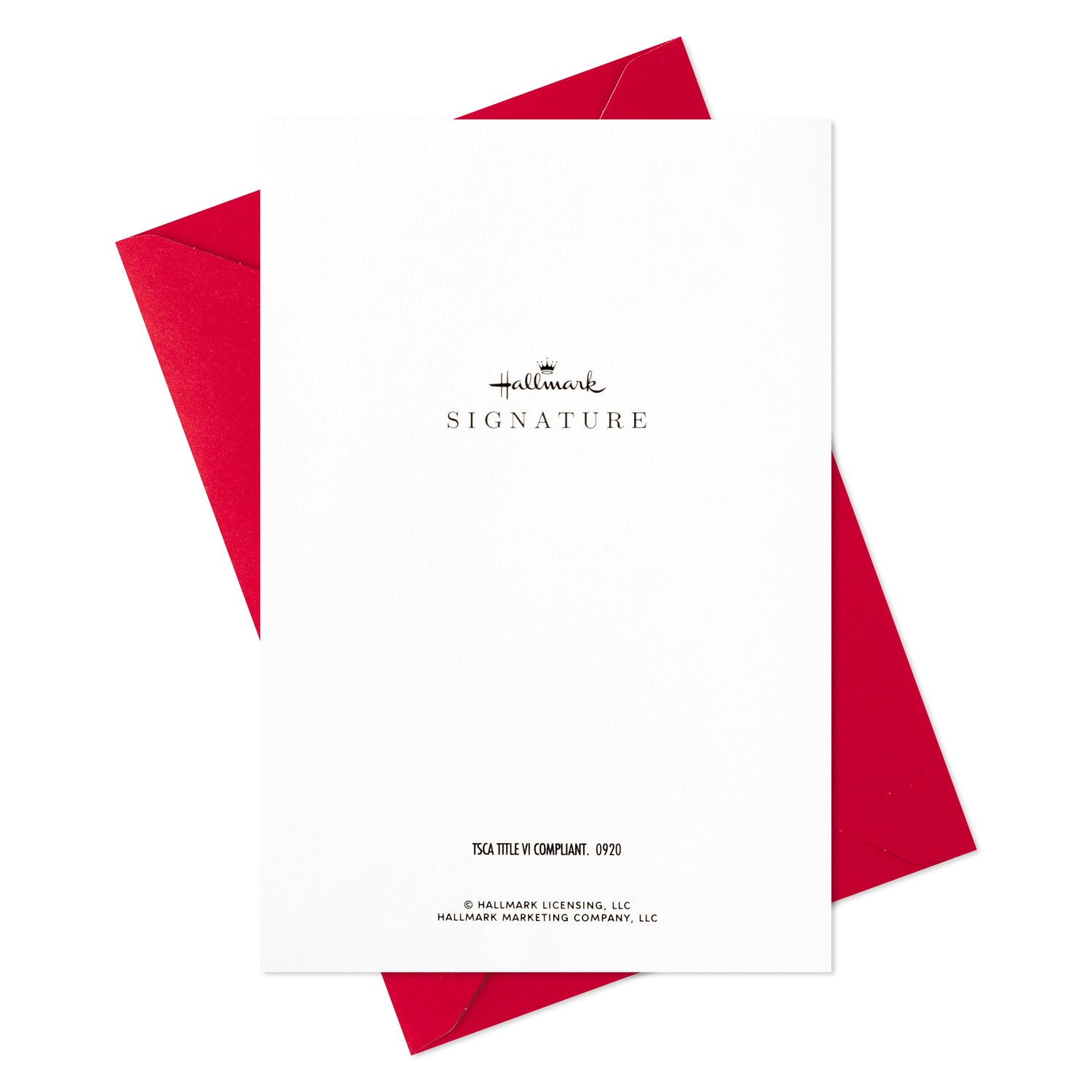 Love card measures 5" x 7.2" and comes with a coordinating envelope featuring a designed liner. Printed on high quality paper stock, Hallmark's eco-friendly greeting cards are made with paper from well-managed forests.