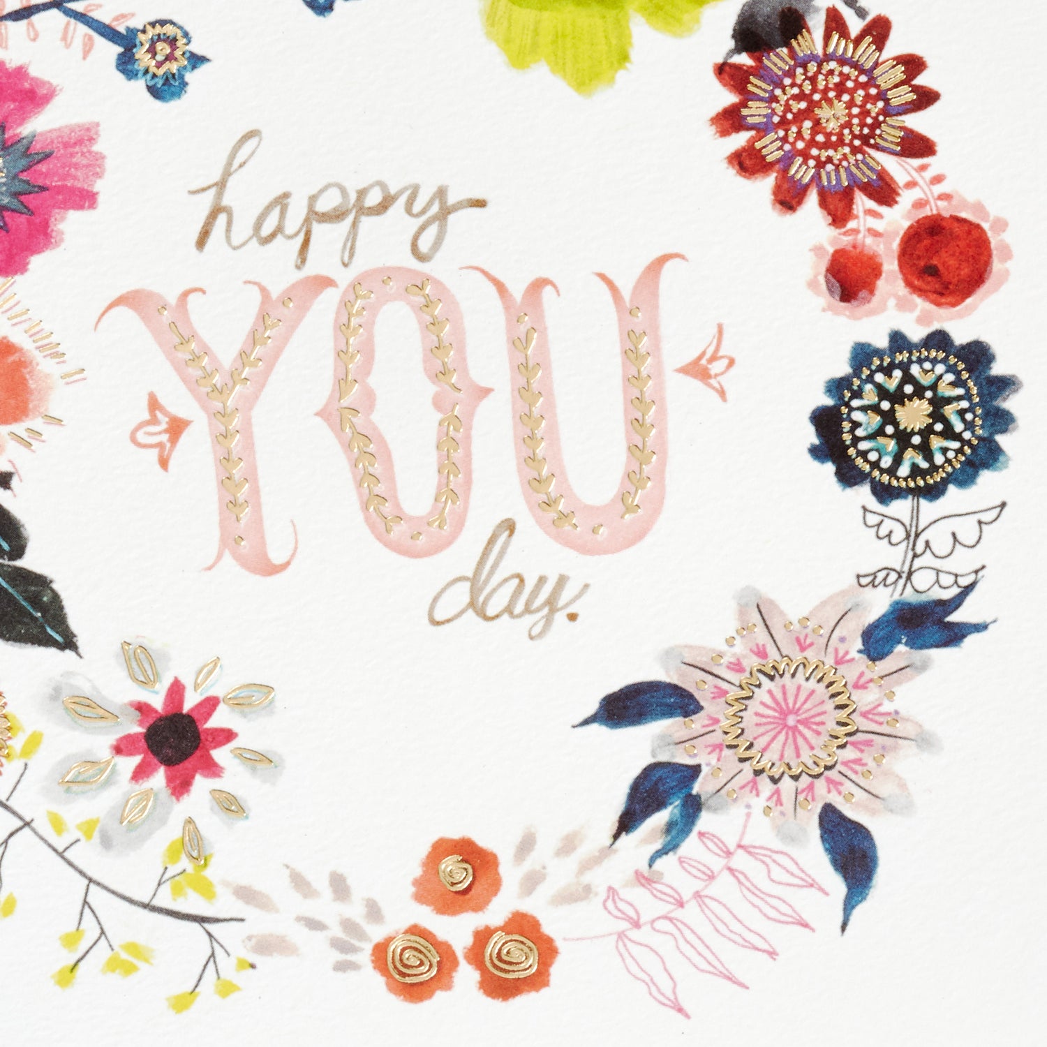 Wish family and friends a very happy birthday with a versatile blank card featuring a modern floral wreath design and plenty of space for your message inside that's sure to make any birthday girl, mom, stepmom, or grandma feel extra special.