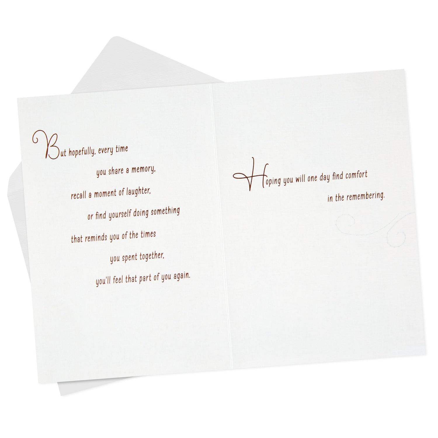 Reach out with a comforting note in difficult times with this sympathy card featuring an elegant design and a beautiful sentiment.