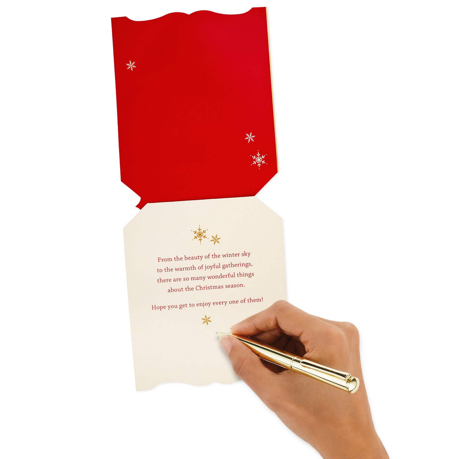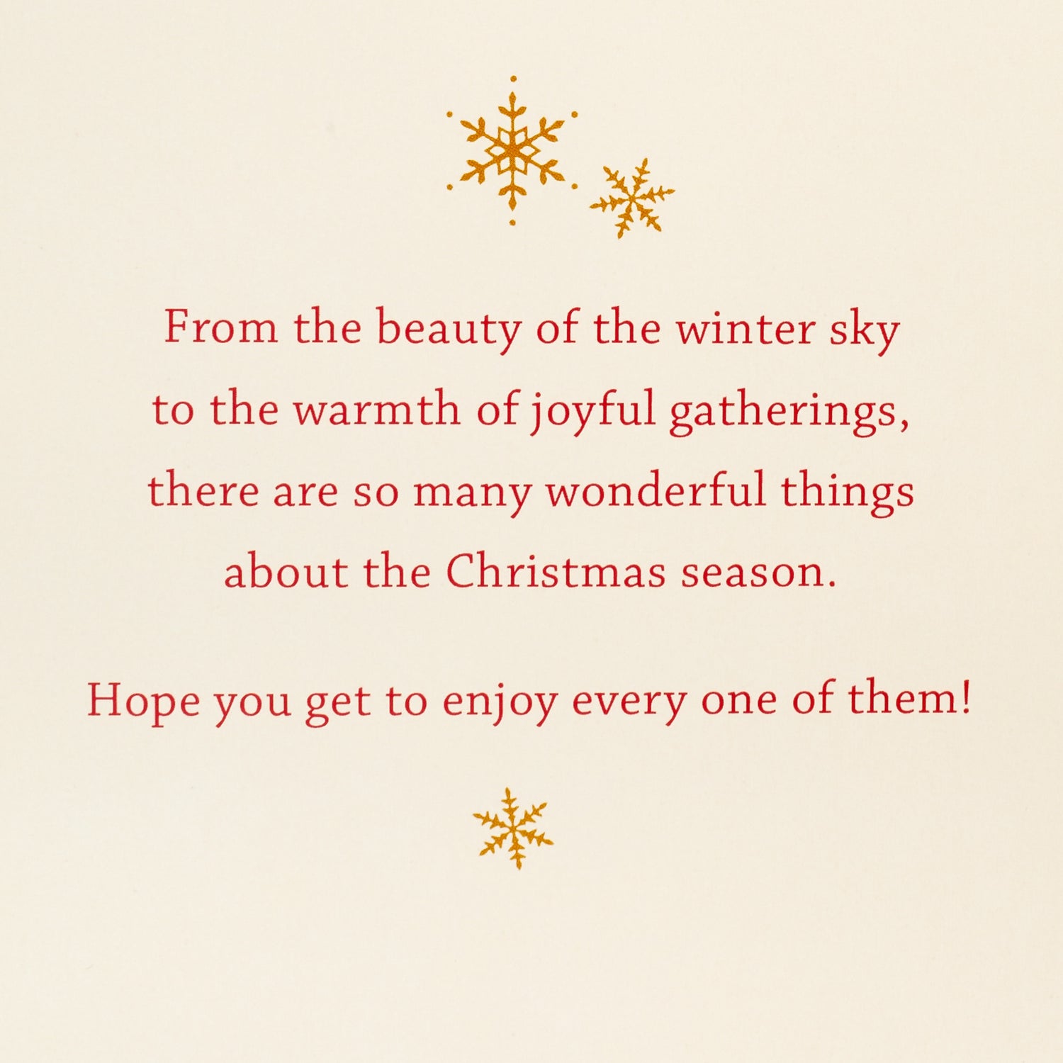 Inside reads: "From the beauty of the winter sky to the warmth of joyful gatherings, there are so many wonderful things about the Christmas season. Hope you get to enjoy every one of them!"