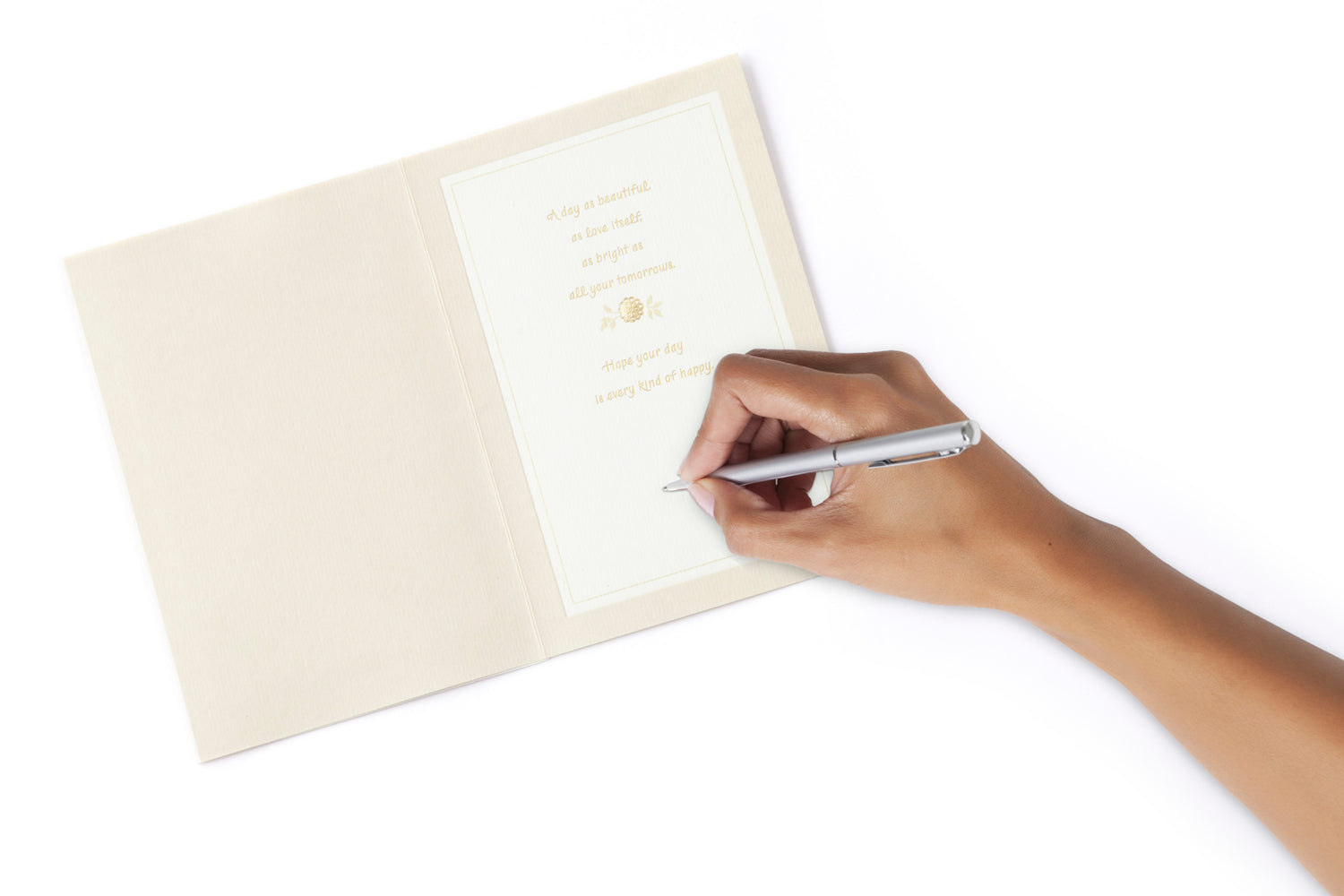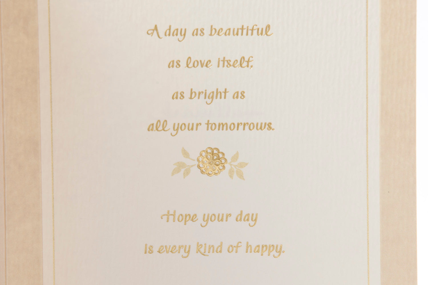 Beautiful card with a thoughtful sentiment inside is the perfect way to wish an amazing couple a happily ever after.