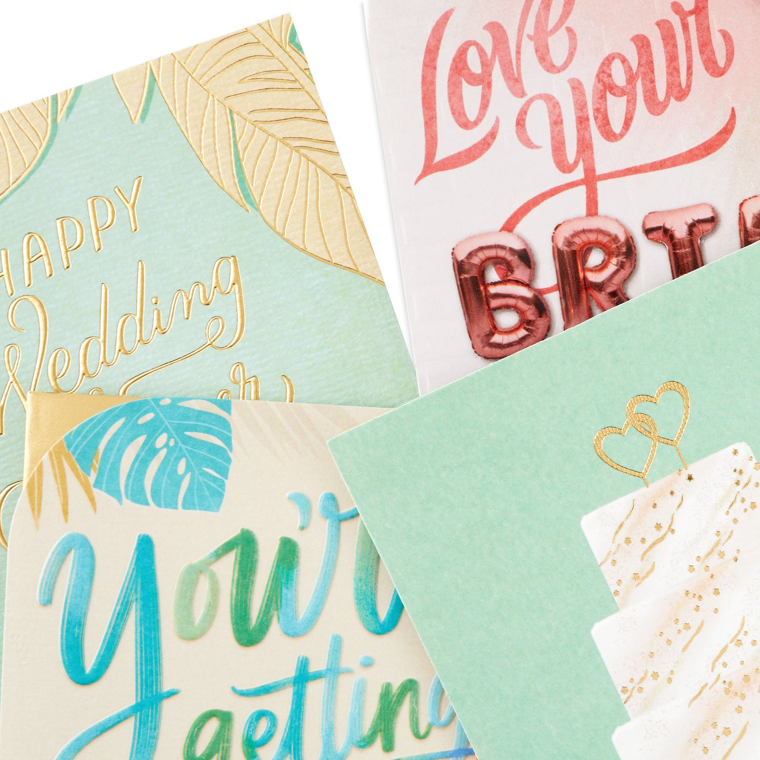Hallmark Wedding Events Card Assortment, 4 Cards with Envelopes (Engagement Congratulations, Bachelorette, Bridal Shower, Wedding)